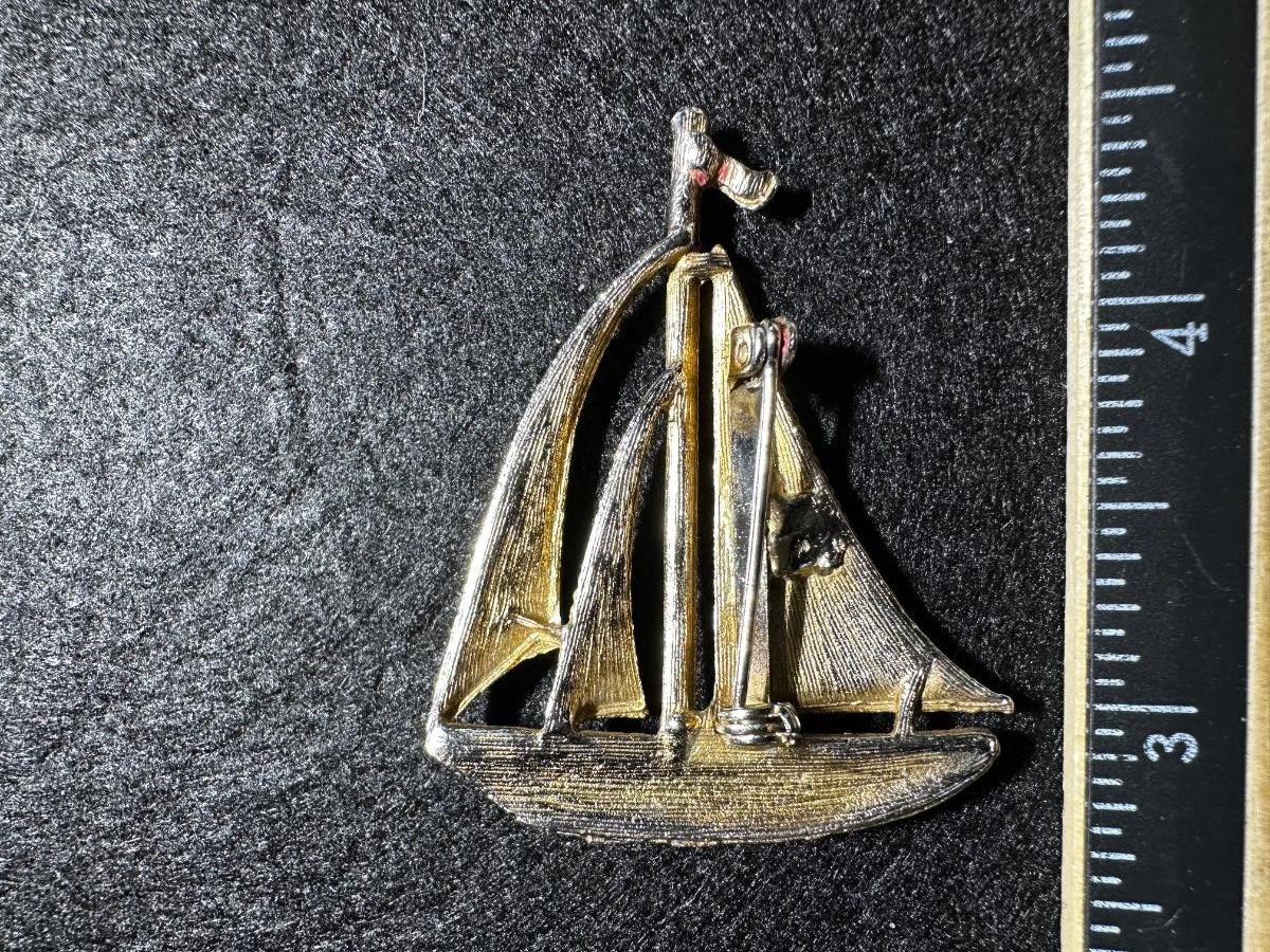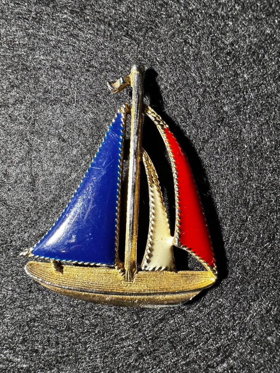 Vintage Gold Tone Red, white and blue sailboat brooch