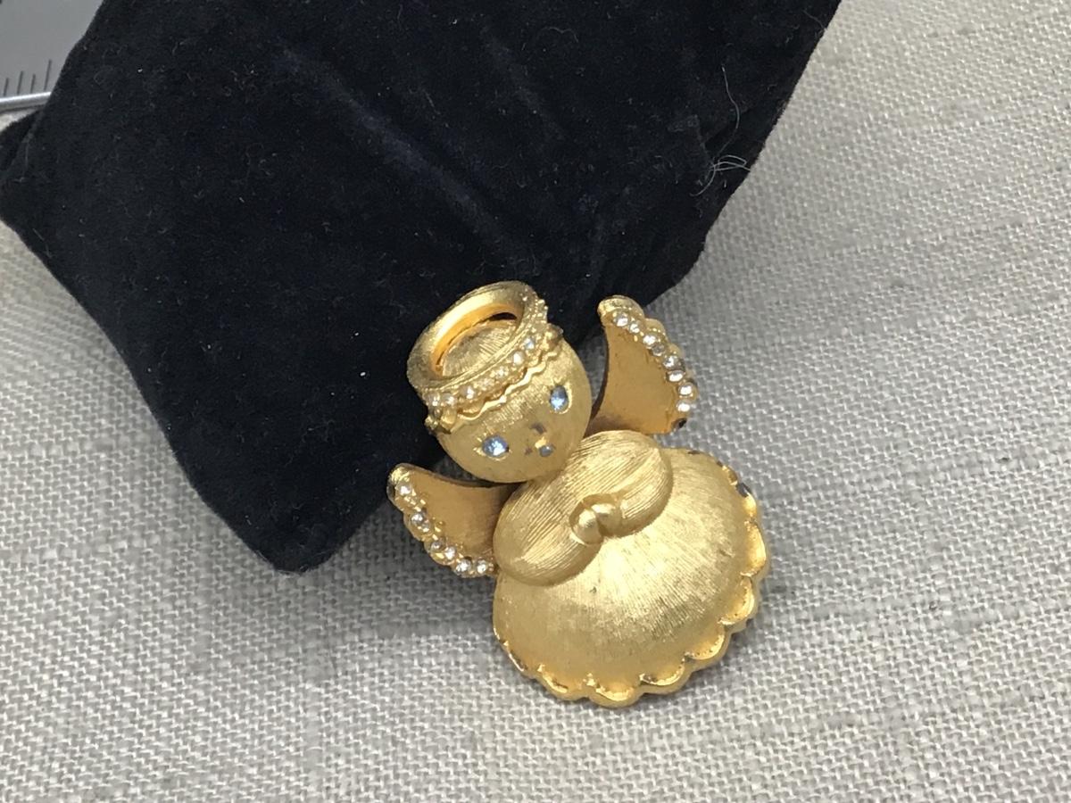 Vintage Gold Tone + Rhinestone Angel Brooch Pin Made By Ultra Craft
