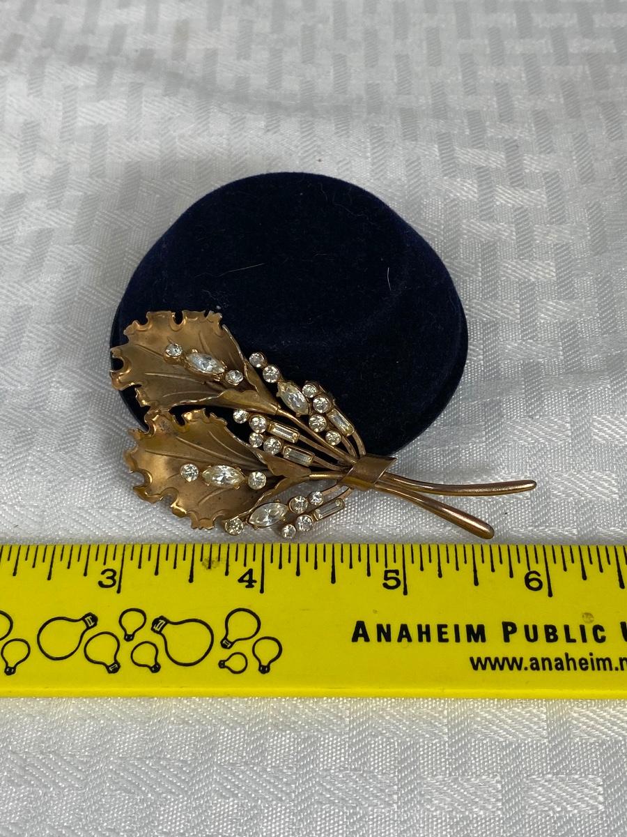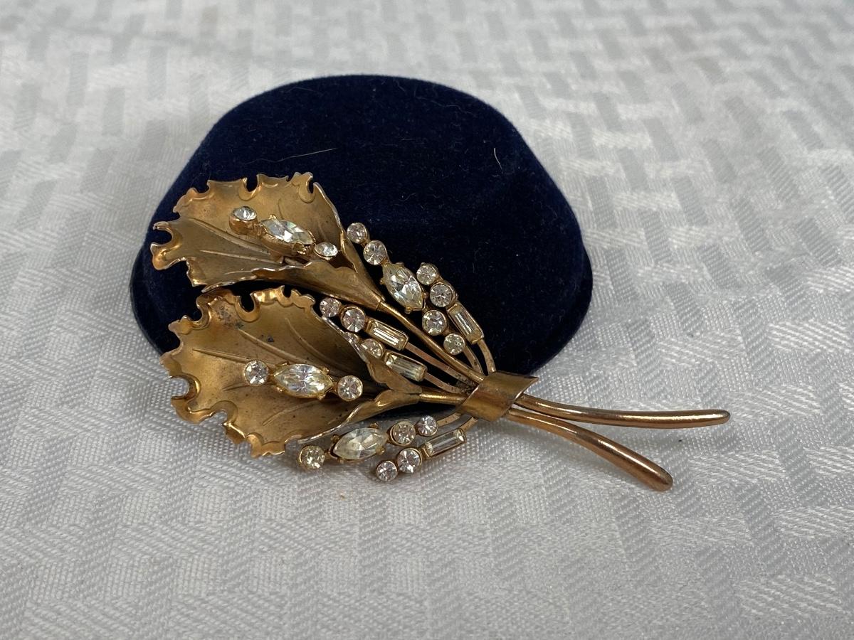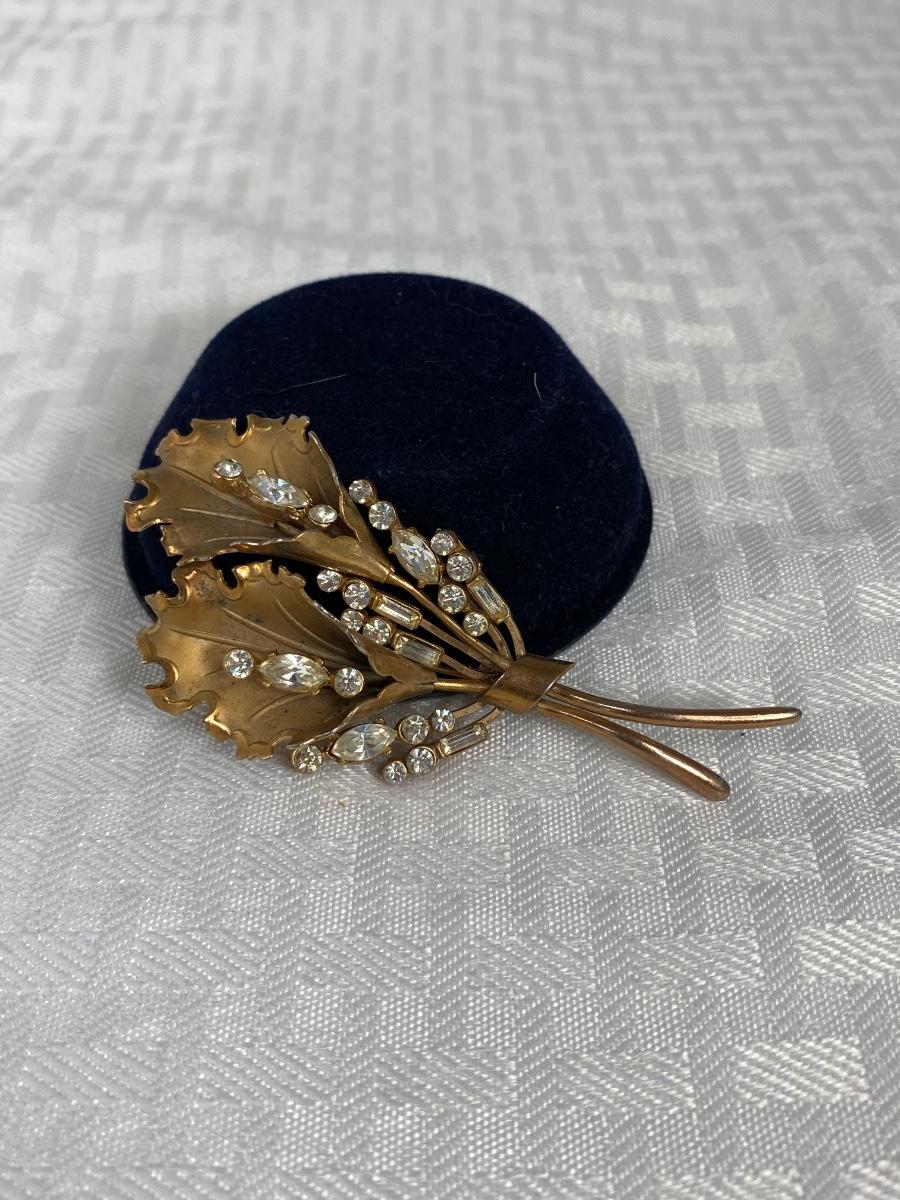 Vintage Gold Tone & Rhinestone Brooch Pin Bouquet