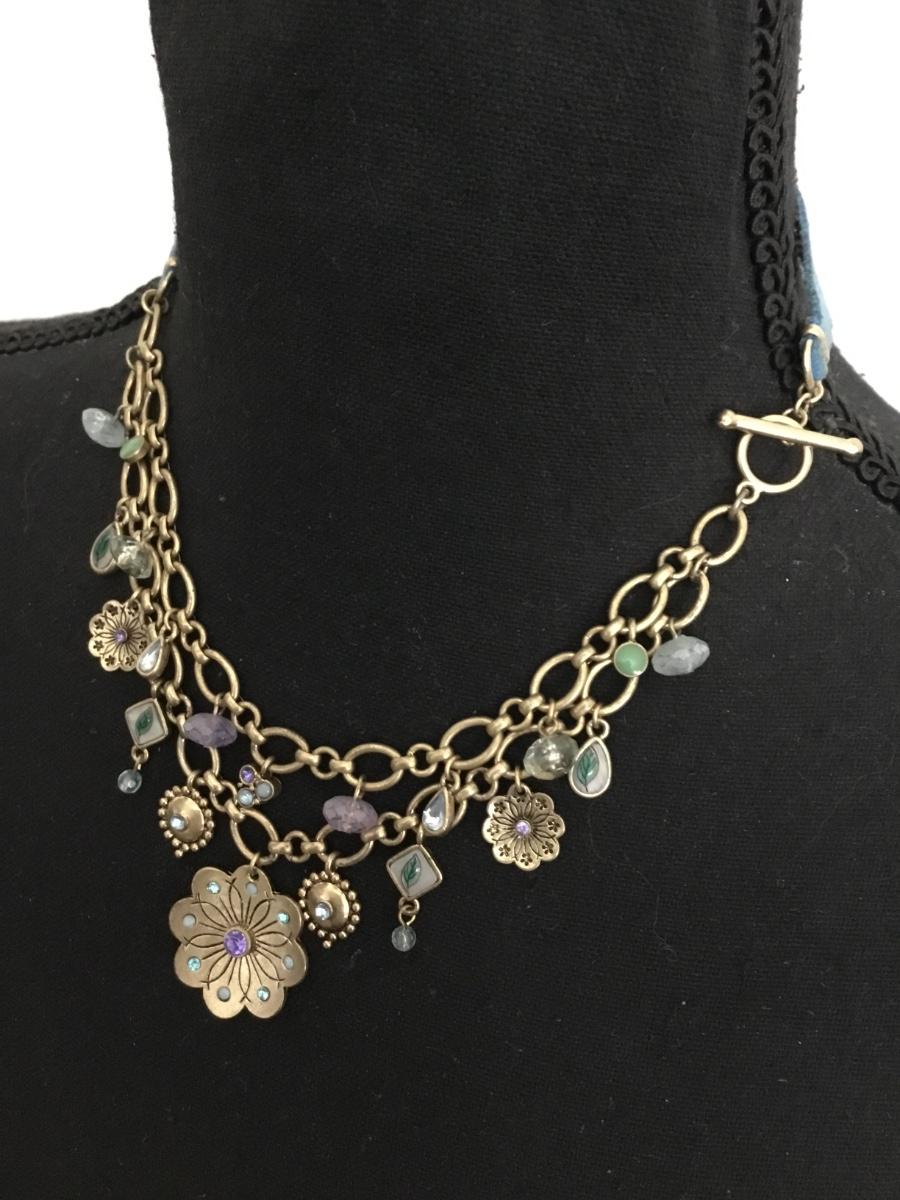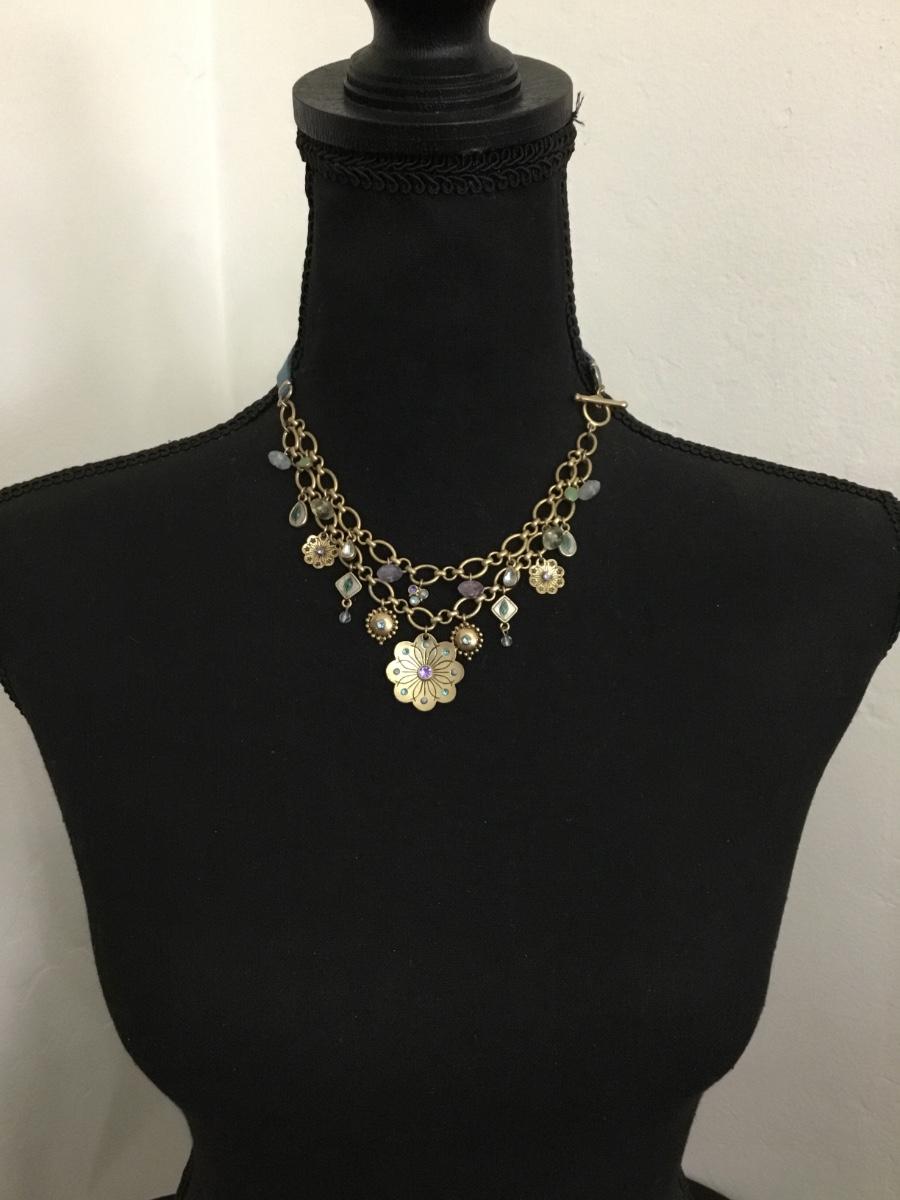 Vintage, gold tone, rhinestone flower, statement, necklace, gold toned