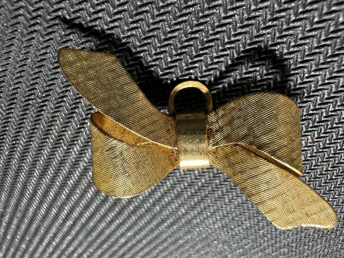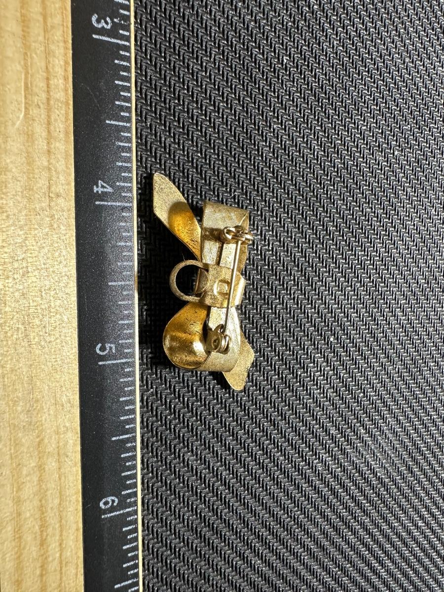 Vintage Gold tone ribbon bow pin