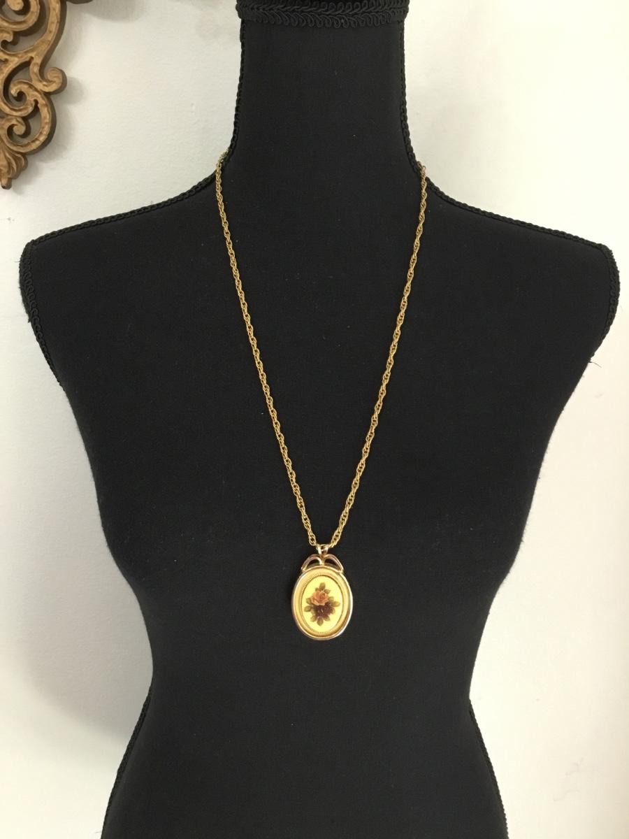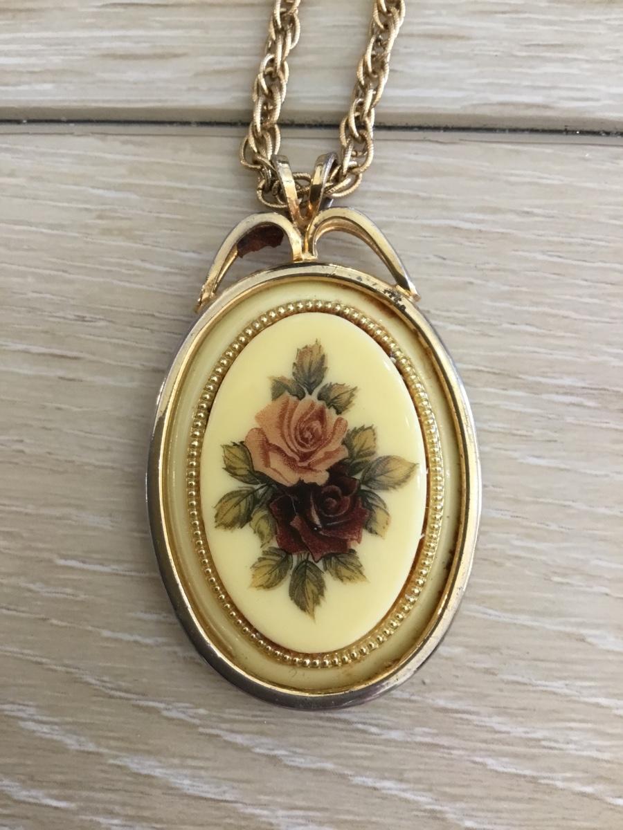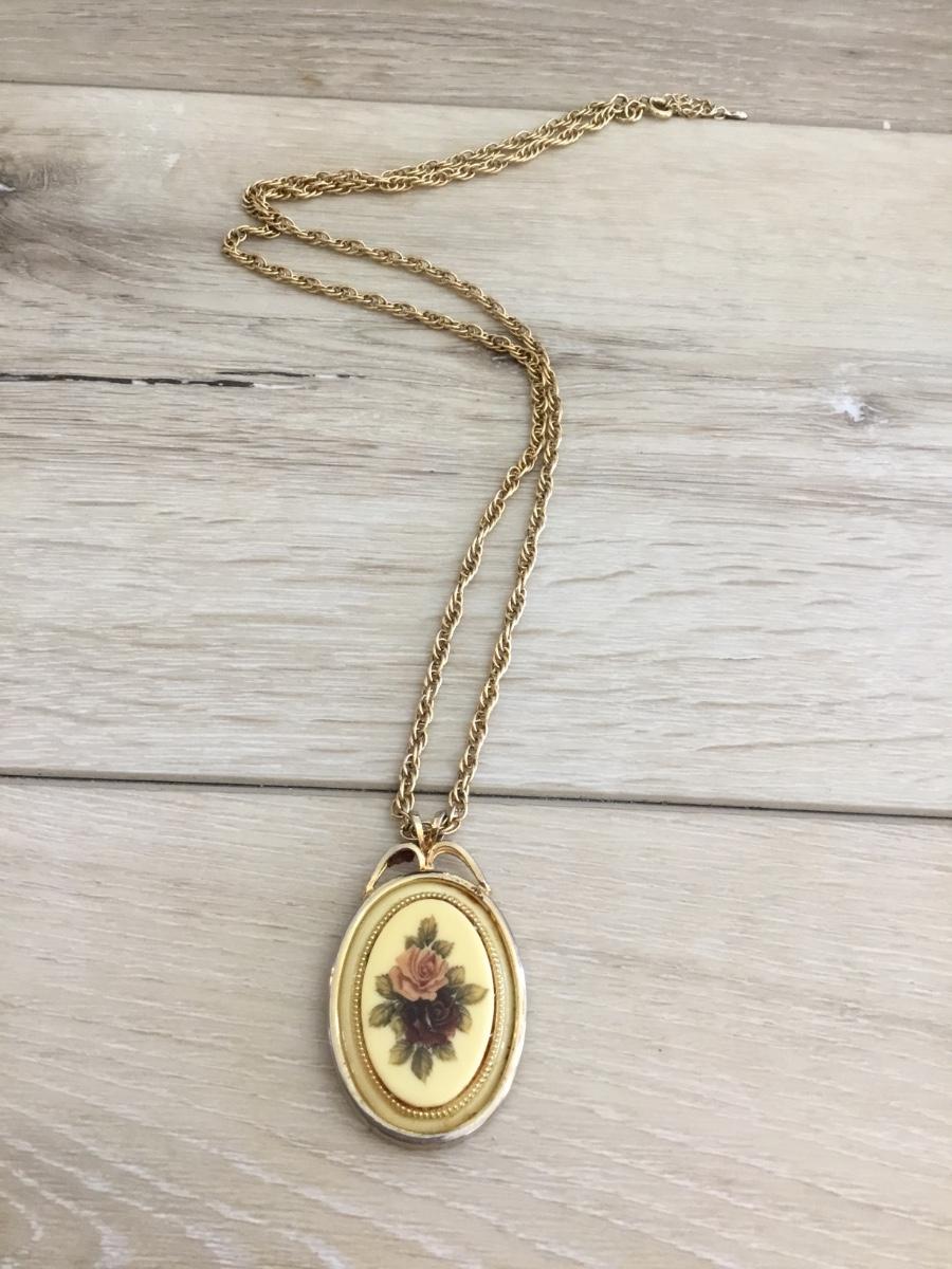 Vintage gold tone rosé pendant & gold tone thick chain necklace