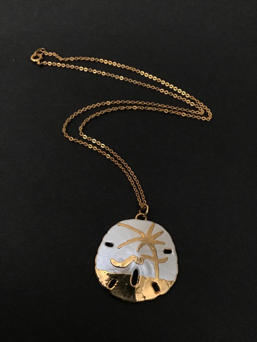 Vintage Gold tone, Sand Dollar, pendant, necklace, vintage