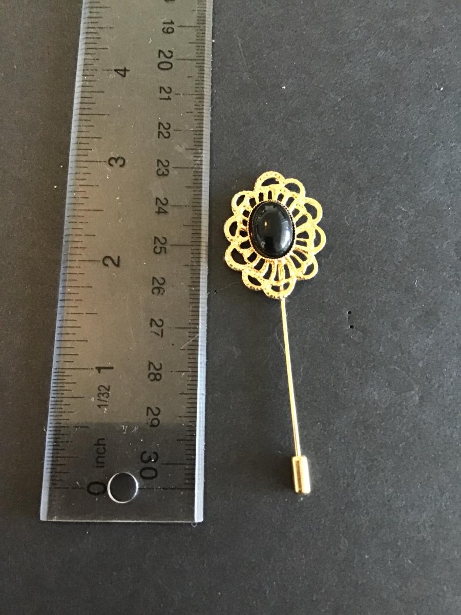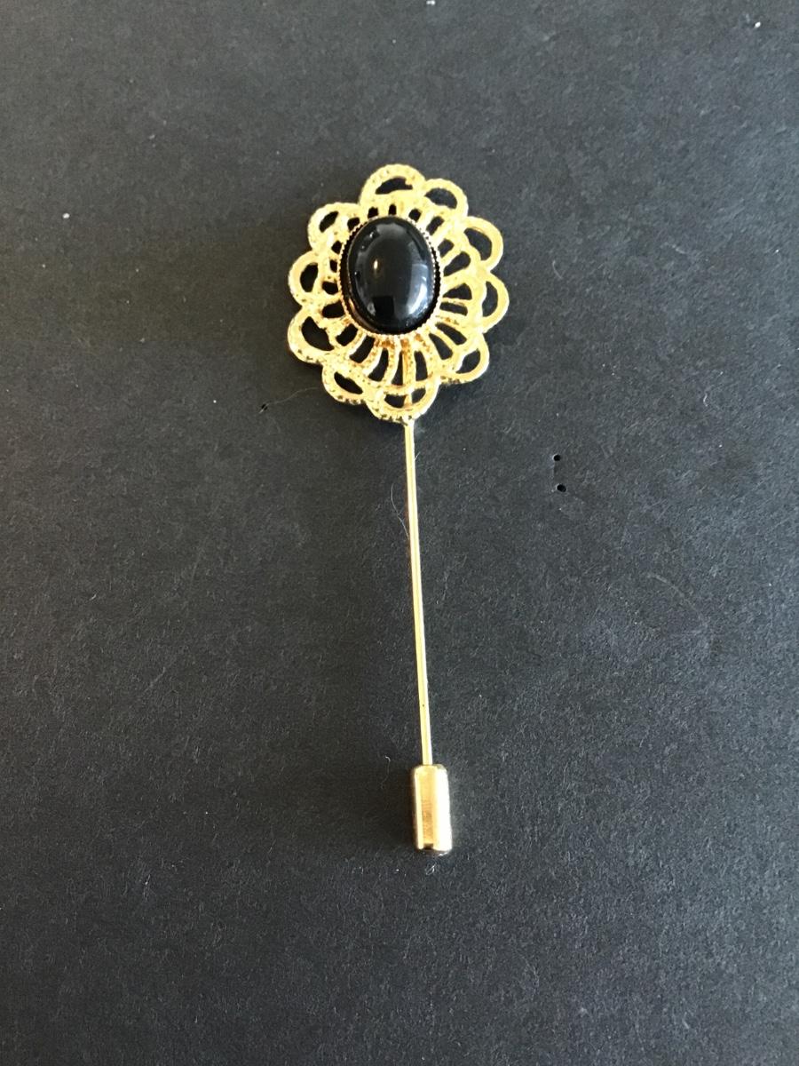 Vintage Gold Tone stick pin with faux black stone
