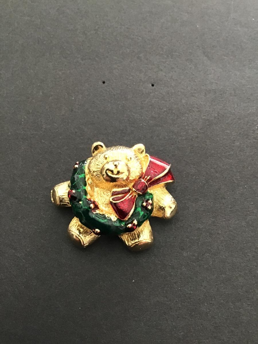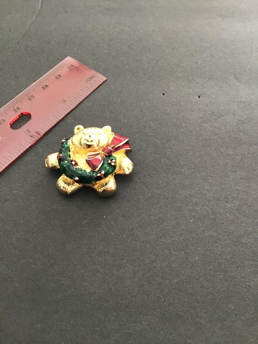 Vintage goldtone, teddy bear Christmas brooch please see attached photos