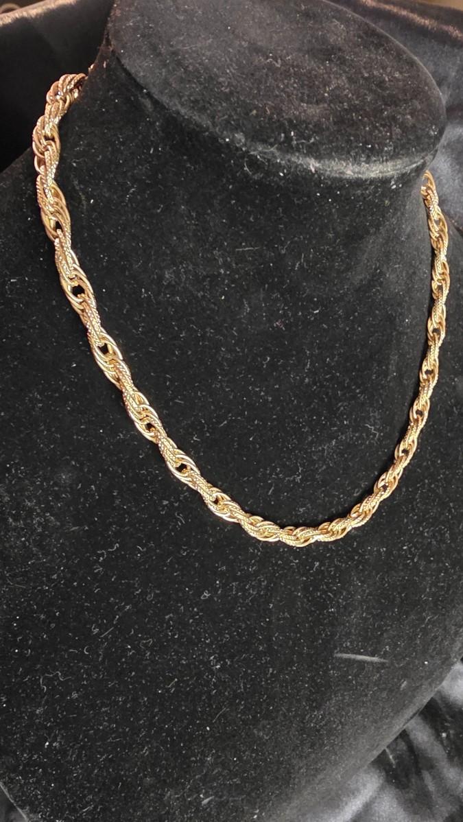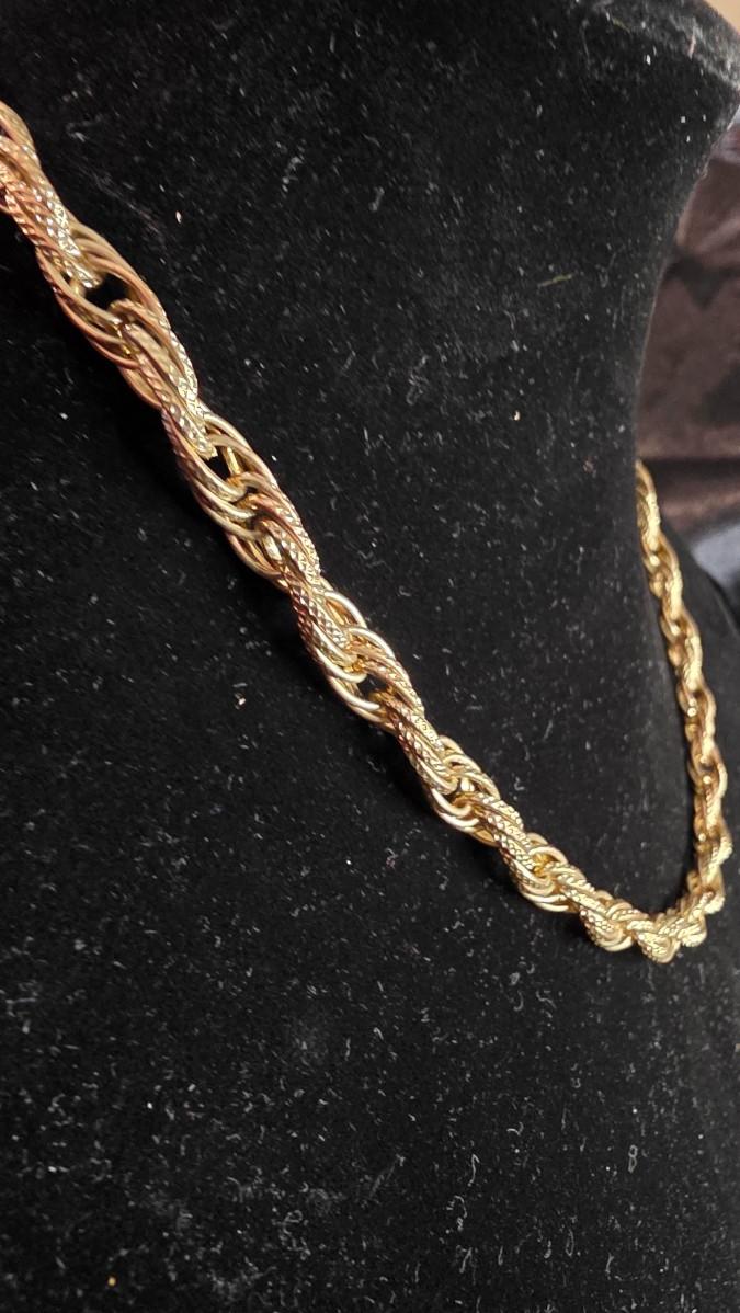 Vintage Gold Tone Textured Rope Chain Necklace - Bold Twisted Link Statement Piece