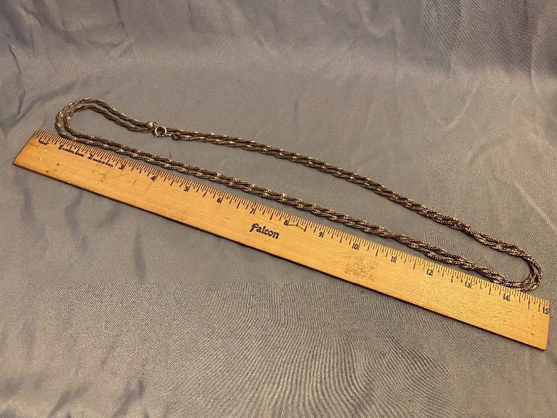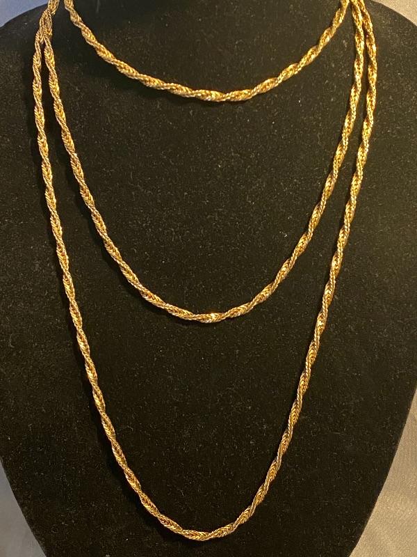 Vintage gold tone metal twisted link necklace. Extra long, can wrap multiple times. Does have clasp closure. About 30" in length, photo shows it doubled at 15".