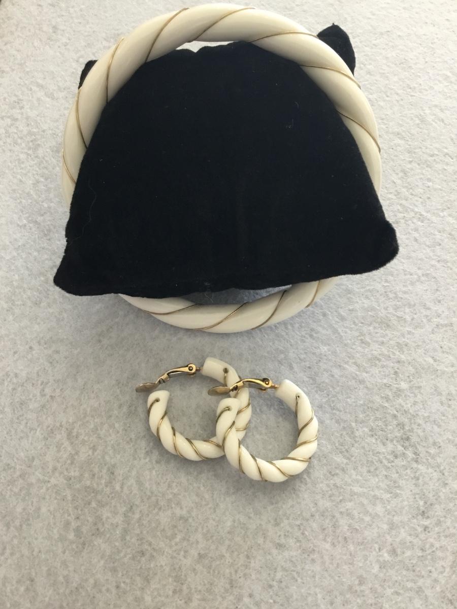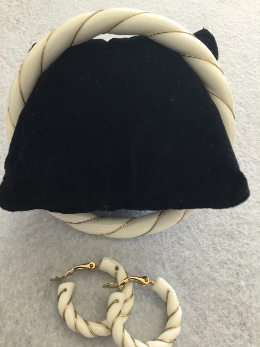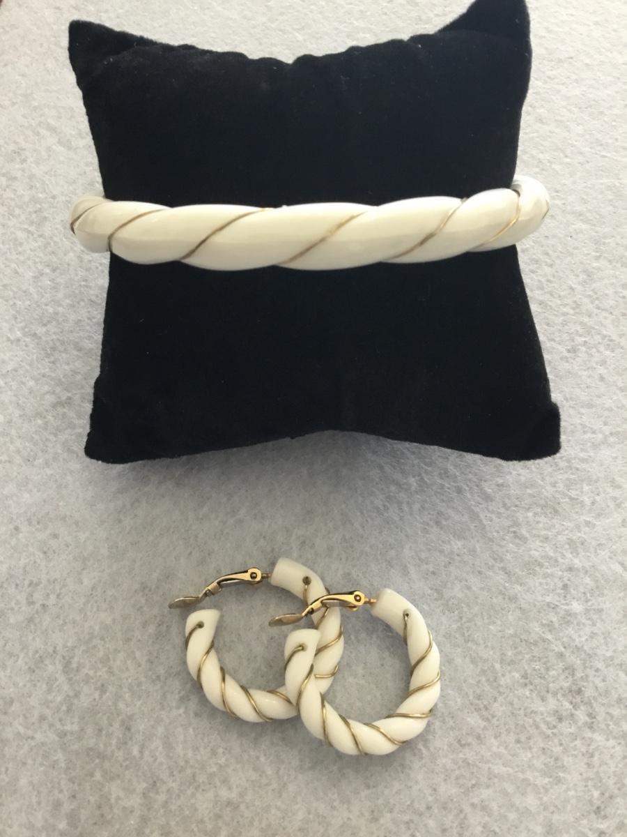 Vintage Gold tone, twisted spiral, bangle bracelet, and clip on earrings