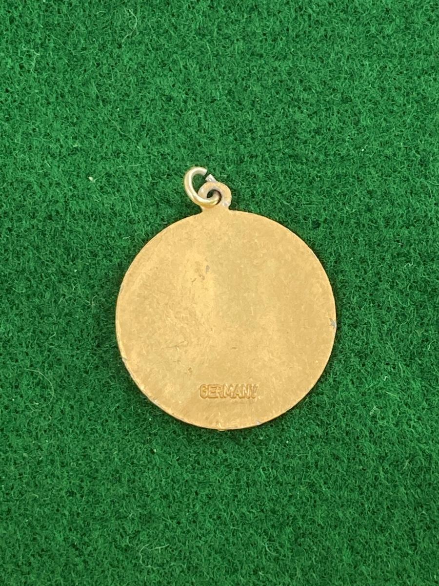 Vintage Gold Tone Virgin Mary & Child Round Pendant Charm Germany