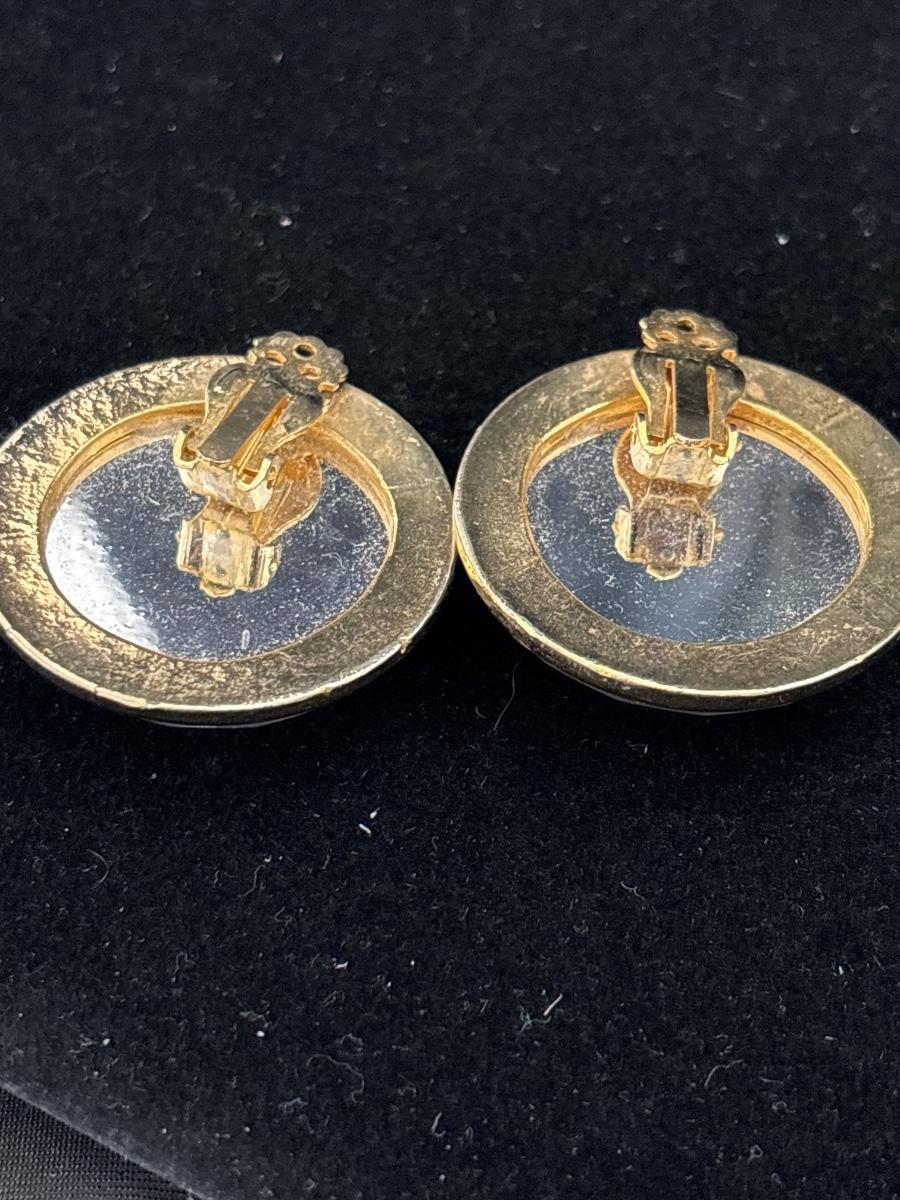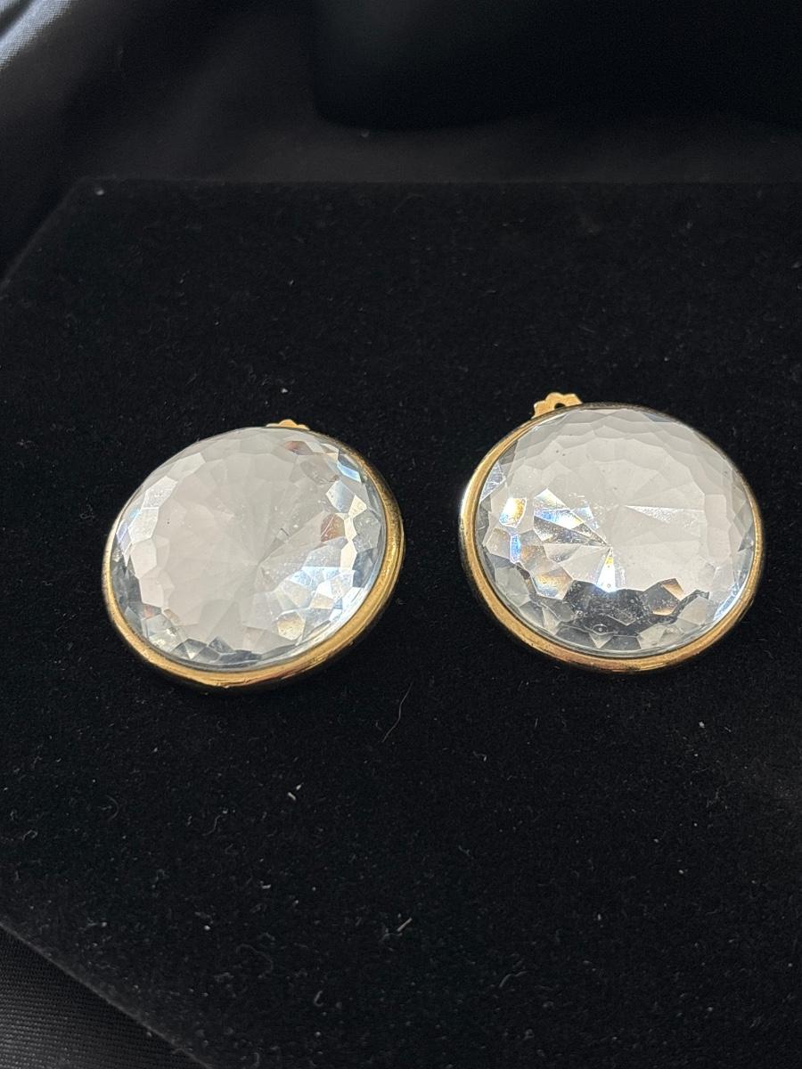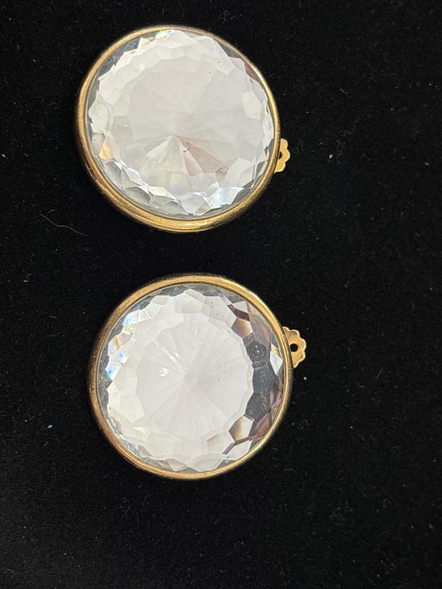 Vintage gold tone with crystal gem tone big rounded clip on earrings