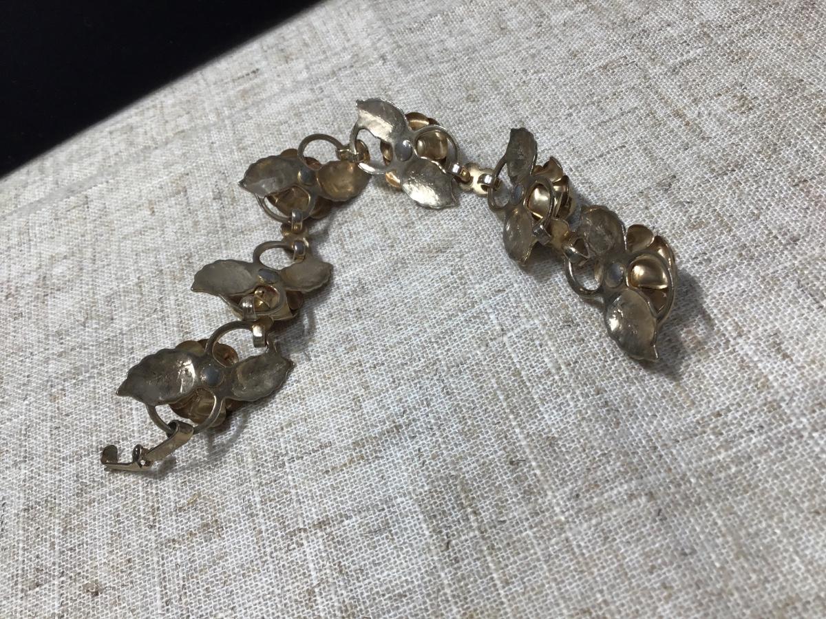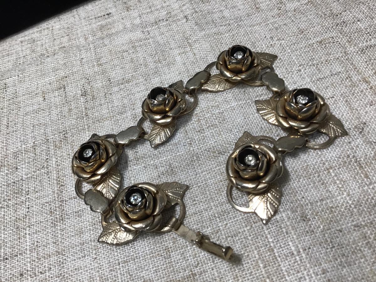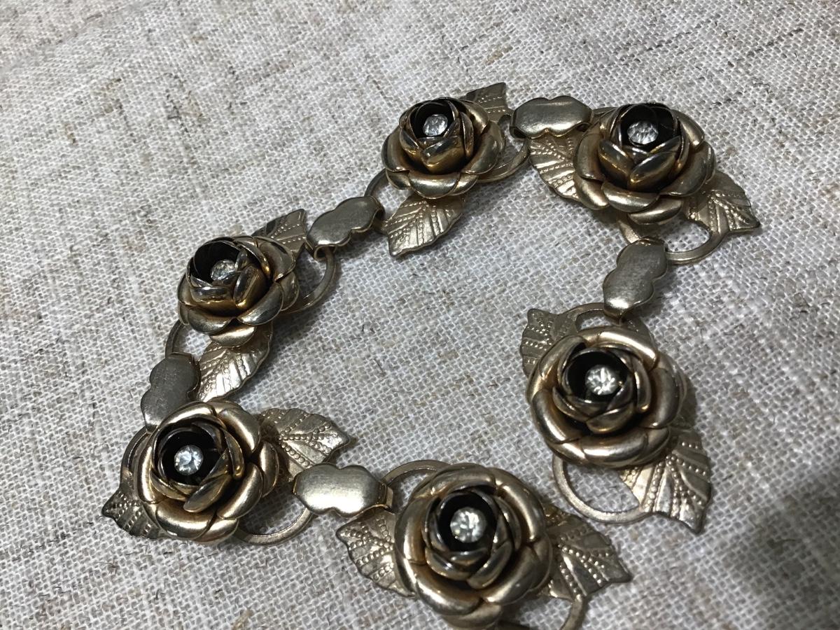 Vintage Gold Tone With Rhinestone Center Rose Bracelet