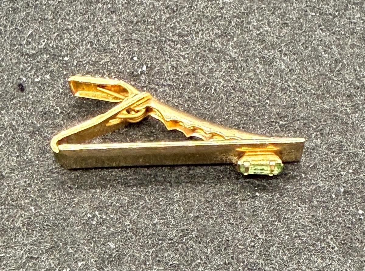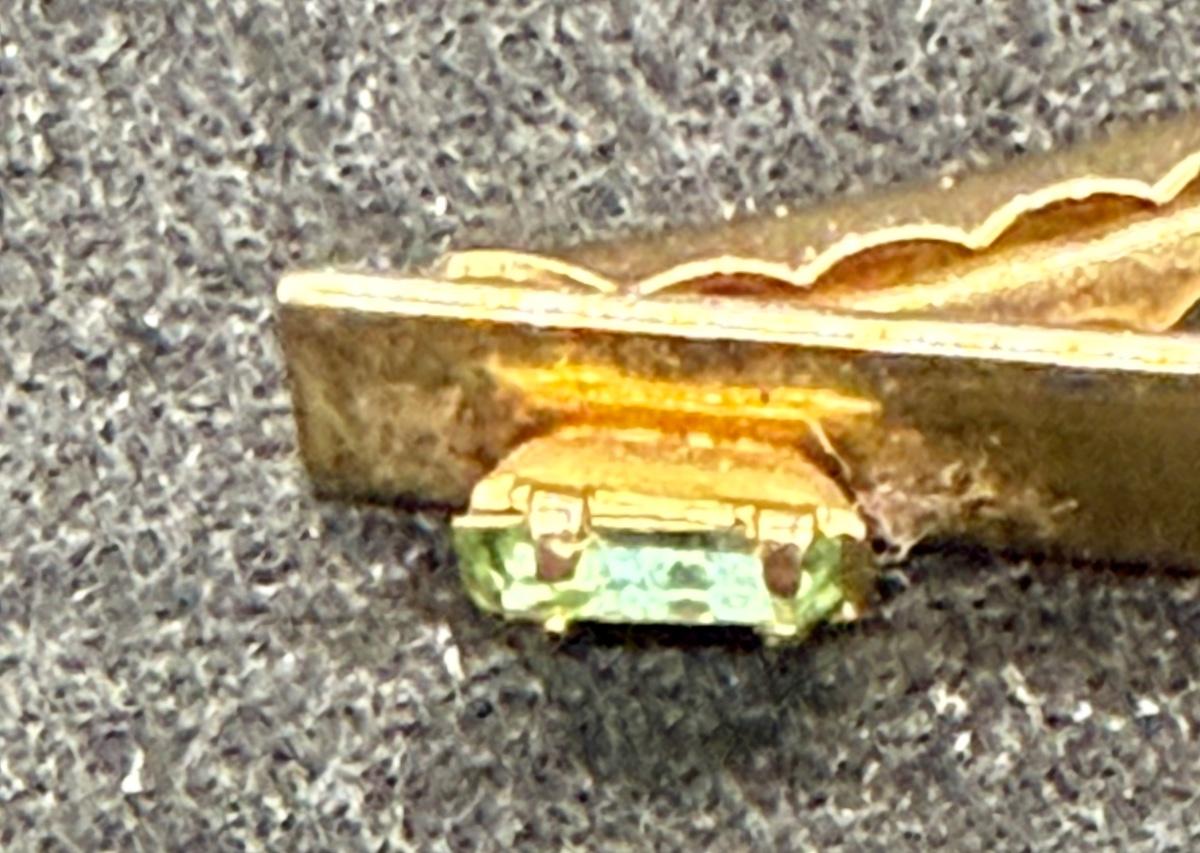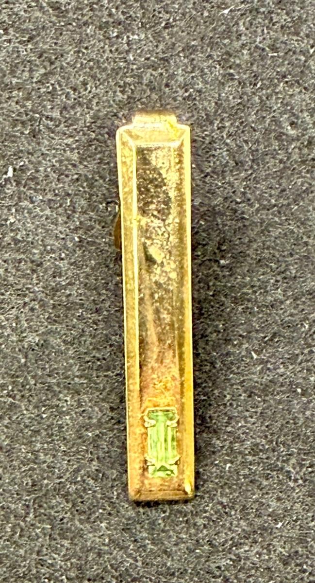 Vintage Gold Tone Tie Bar with Rectangular Peridot