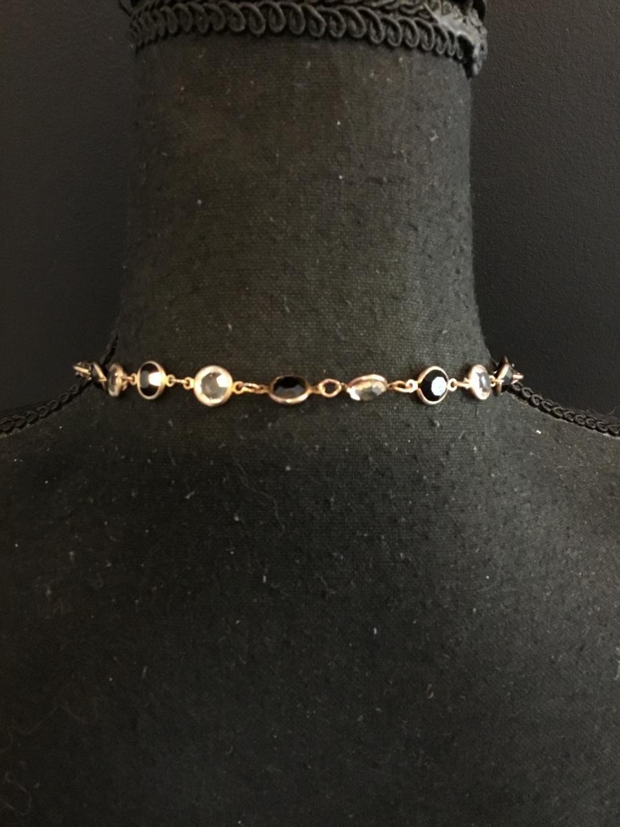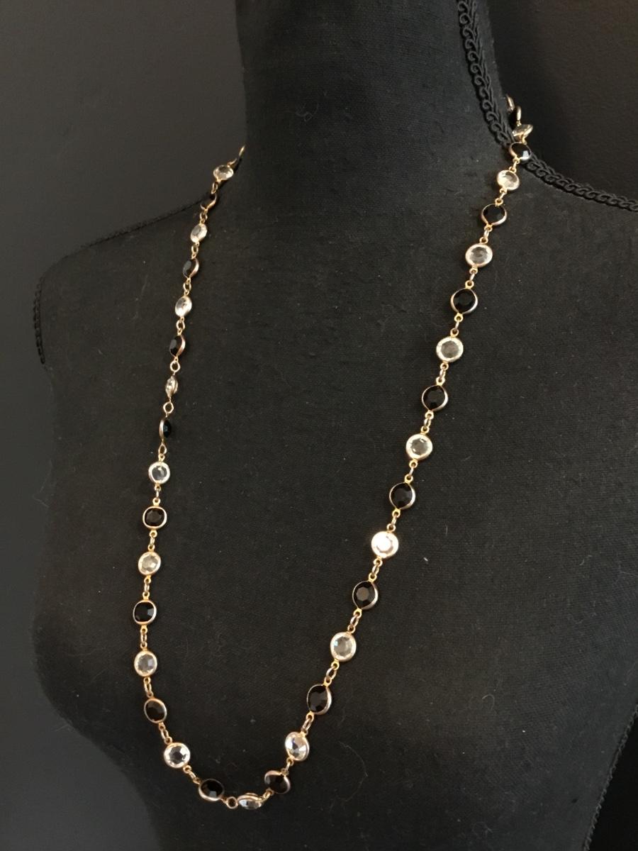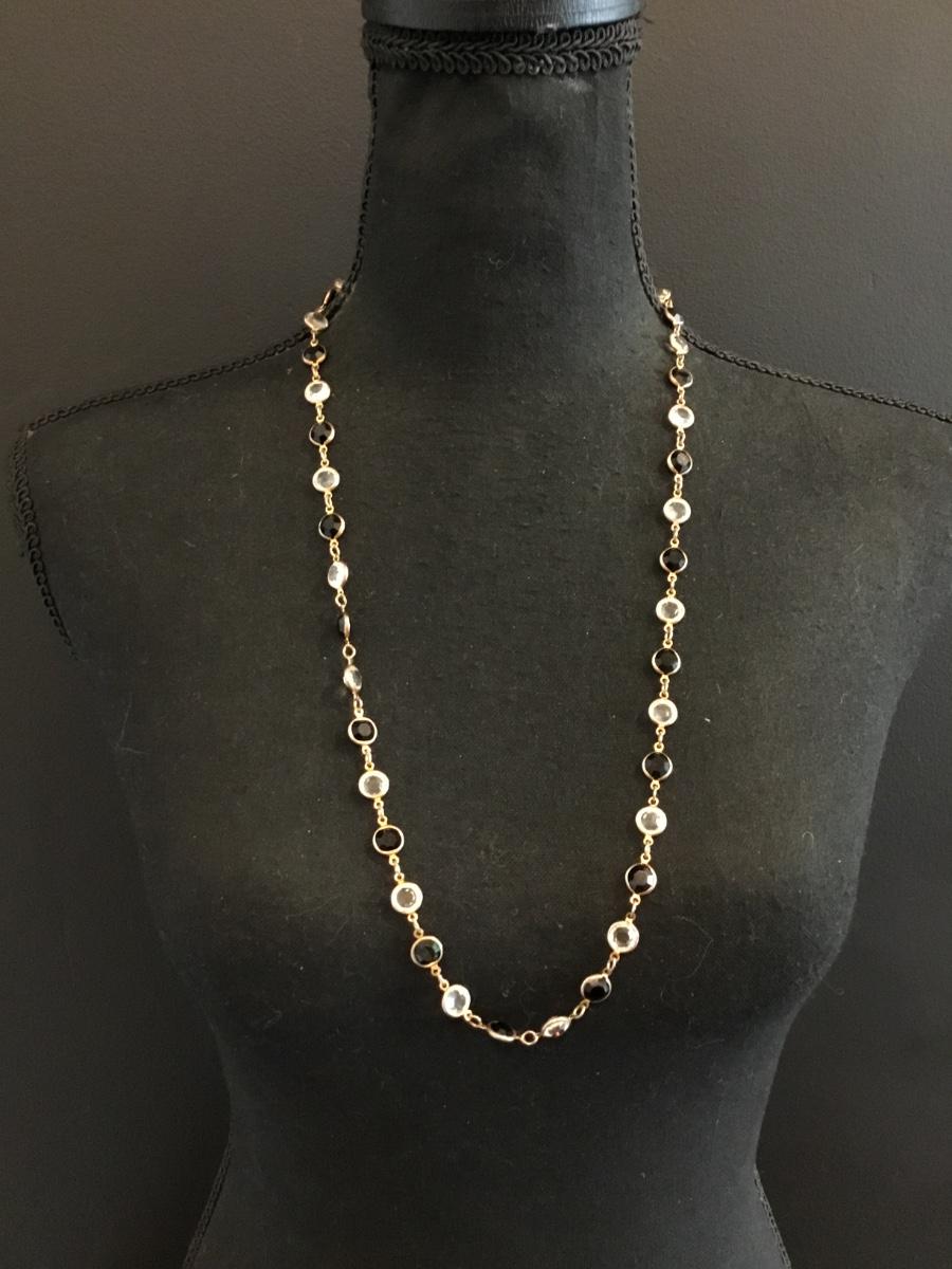 Vintage, gold, toned, black and clear crystal caged bead necklace