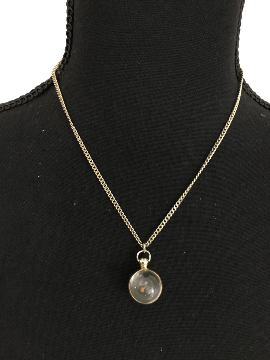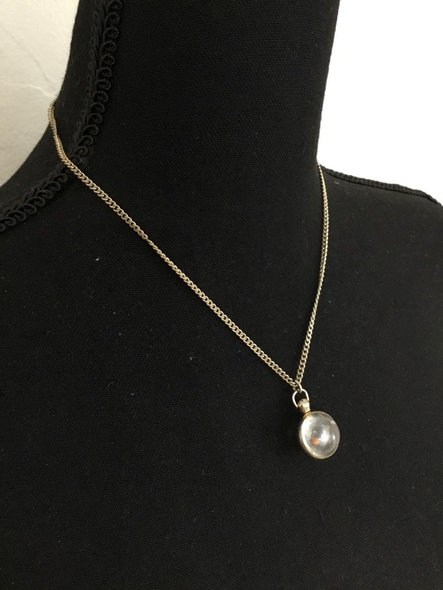 Vintage, gold, toned, chain necklace with clear ball with Mustard seed, pendant