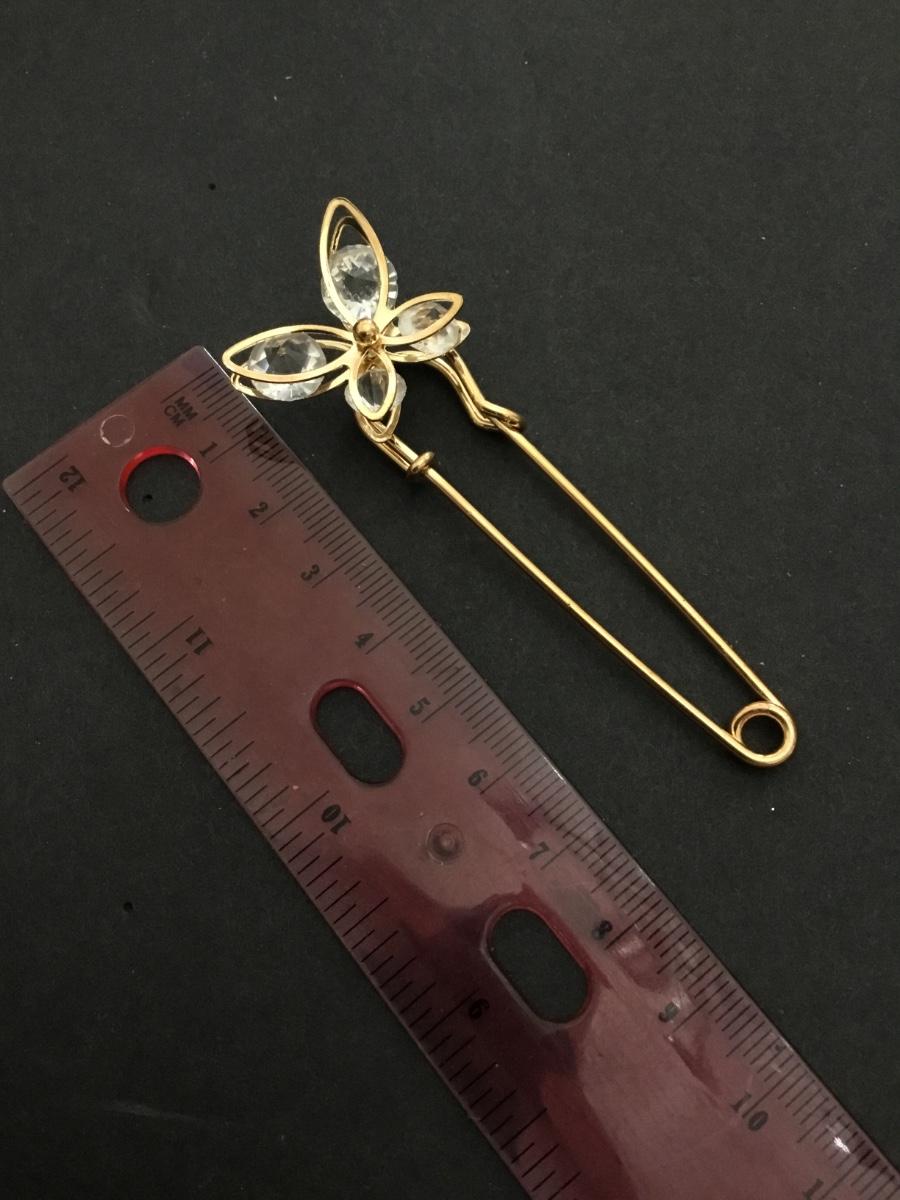 Vintage, gold, toned, crystal rhinestone butterfly clip
