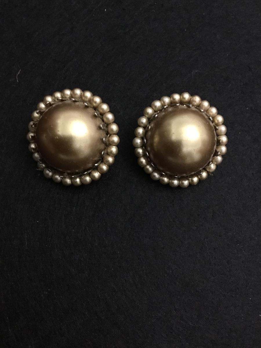 Vintage, gold, toned domed clip on statement earrings