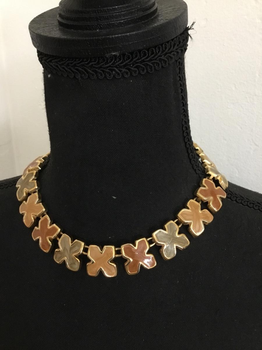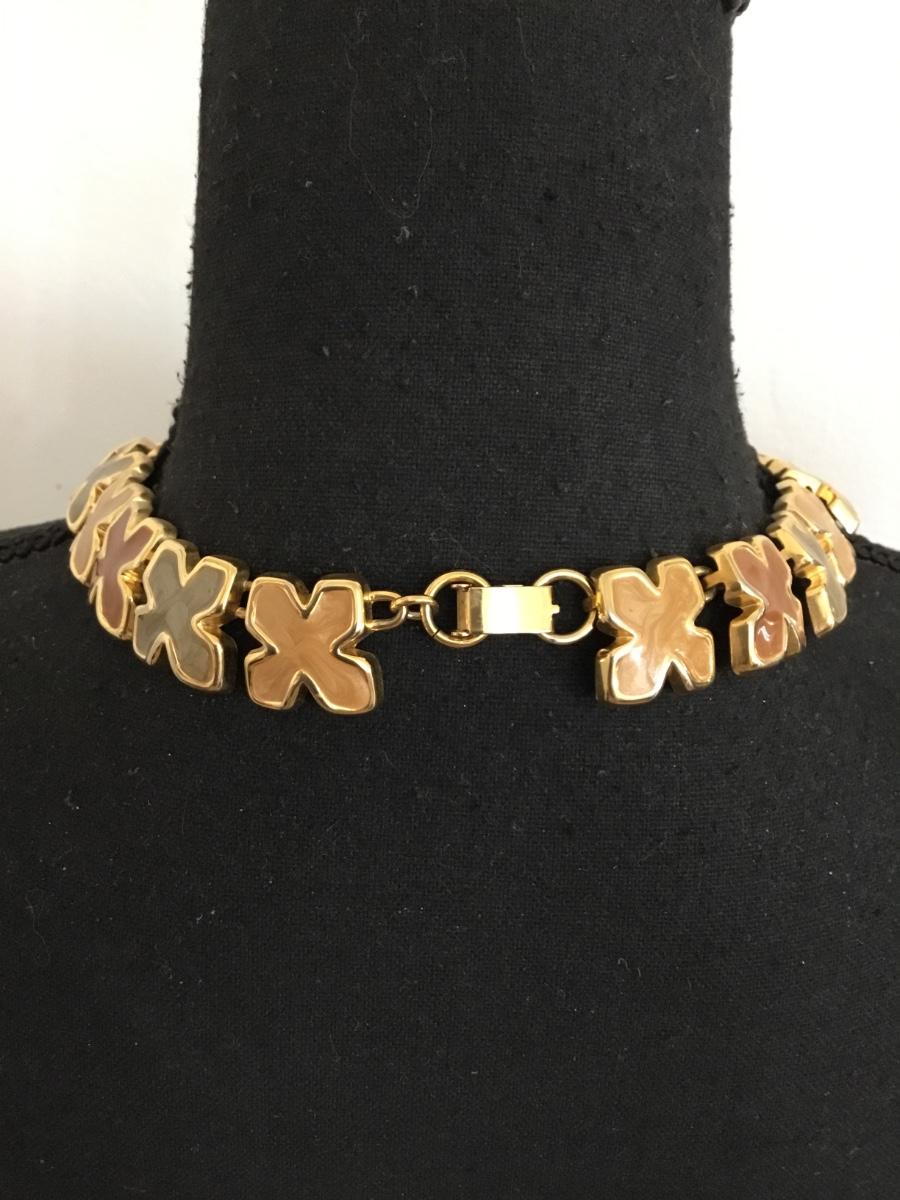 Vintage, gold, toned enamel collar statement necklace