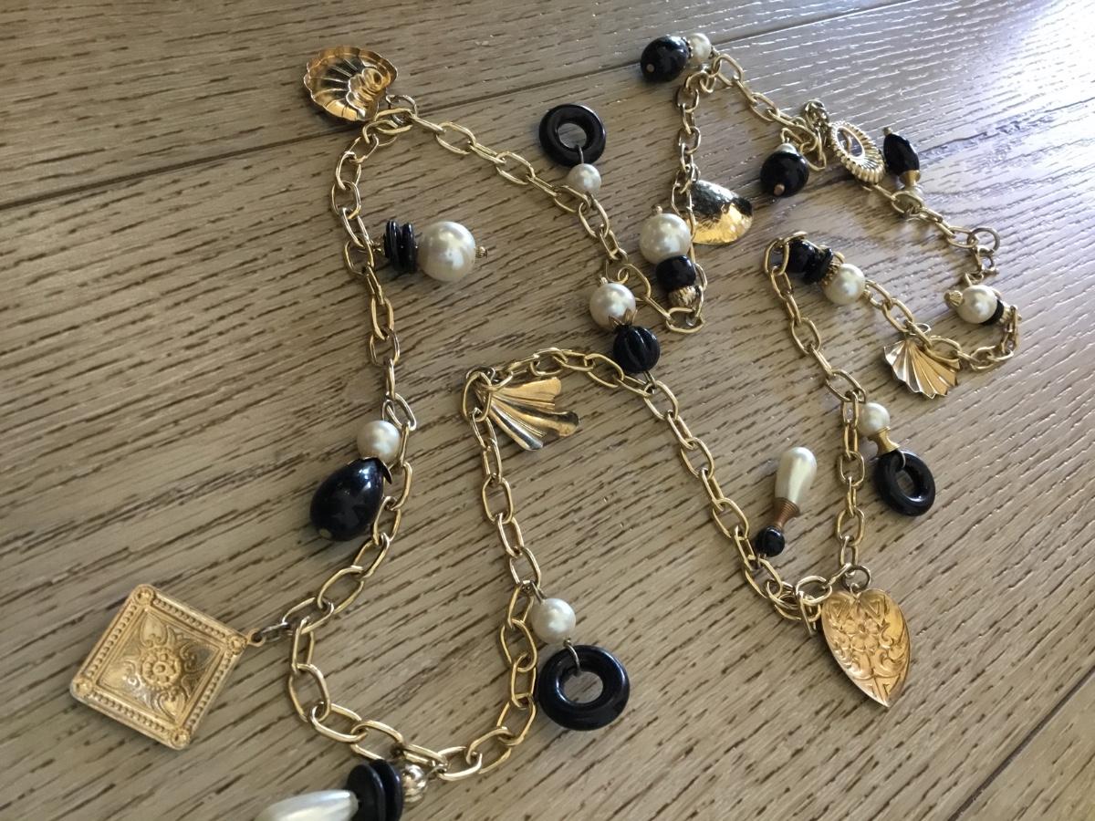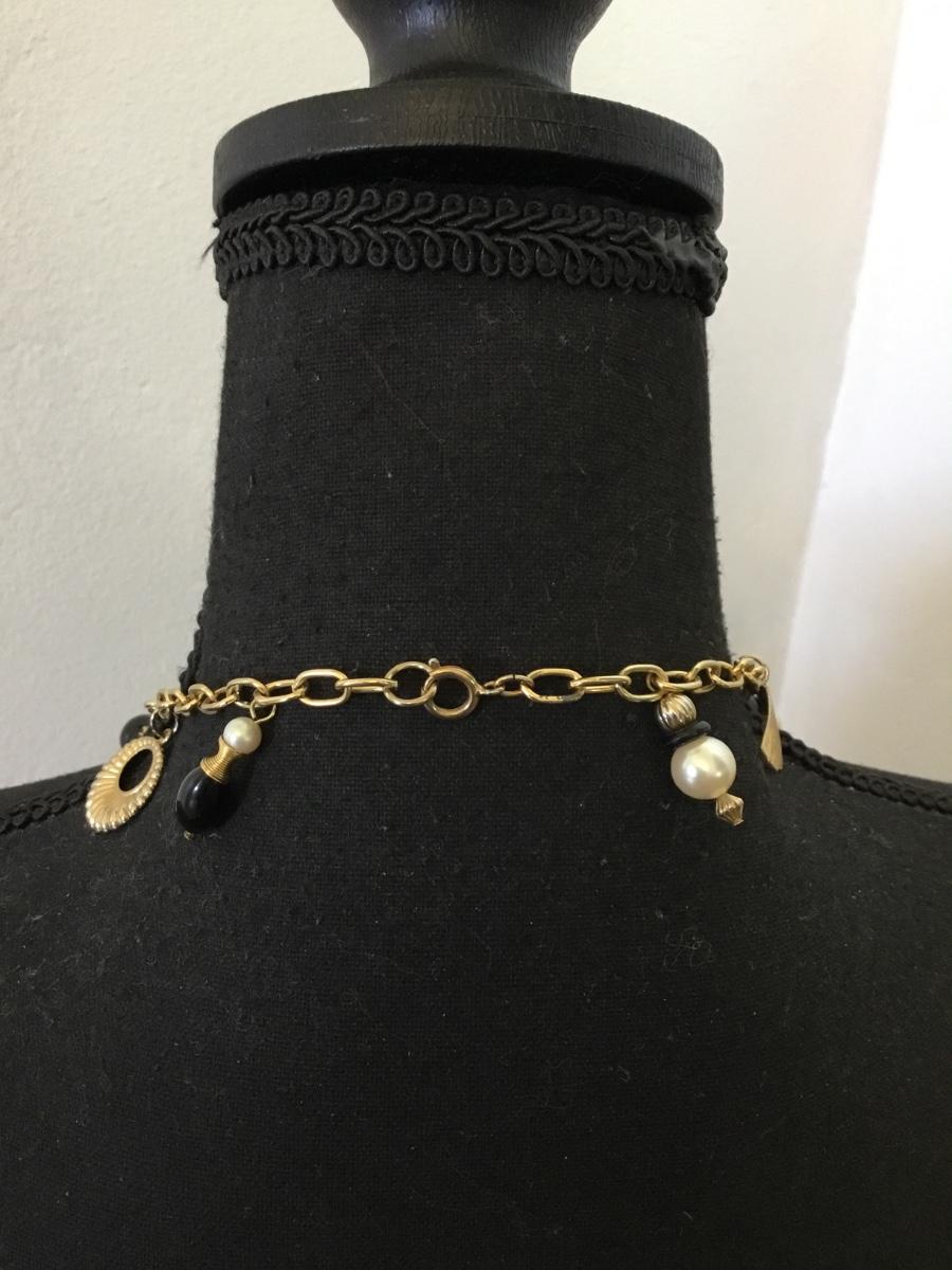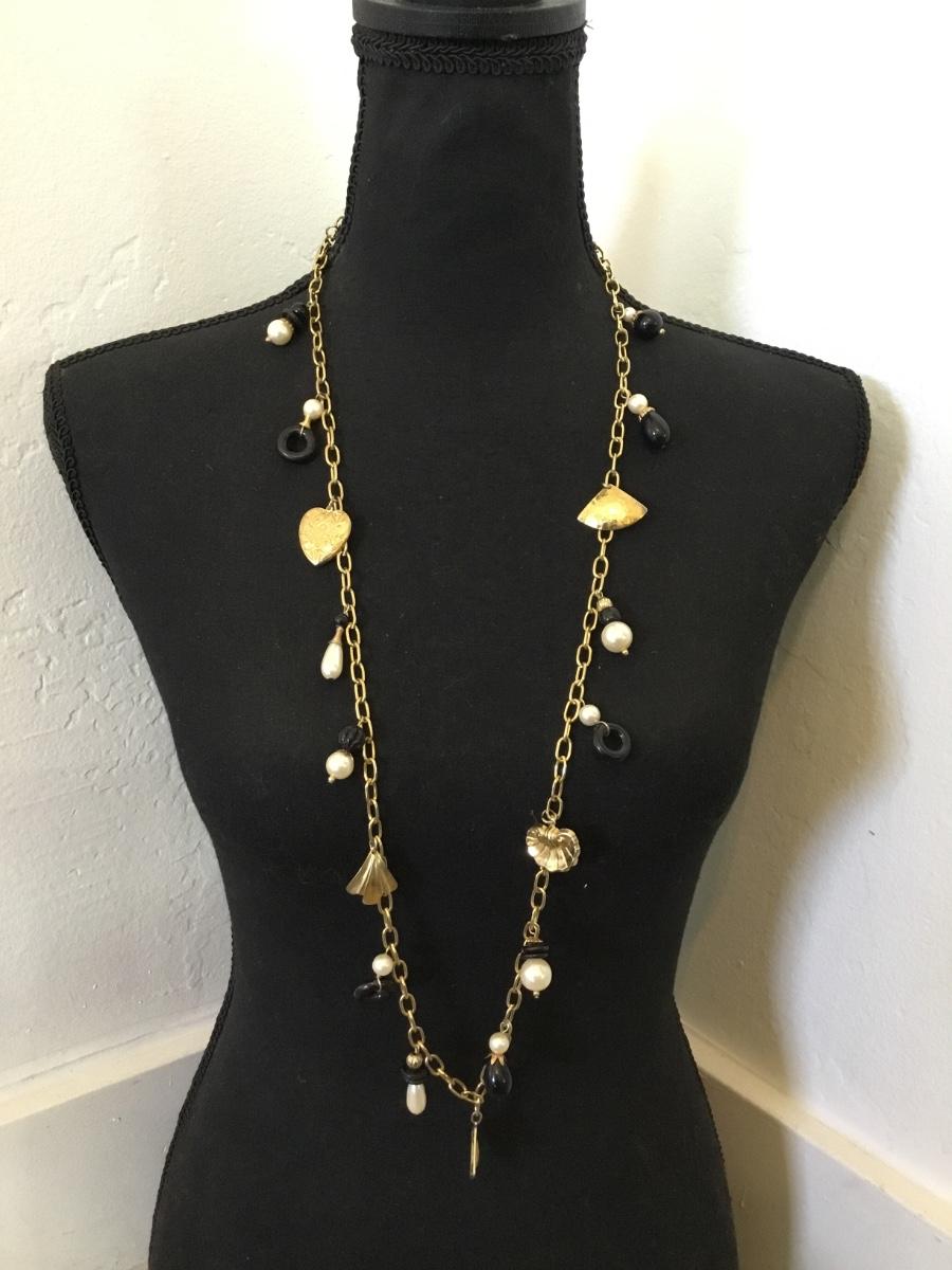 Vintage, gold, toned, faux, pearl charm statement necklace super cute