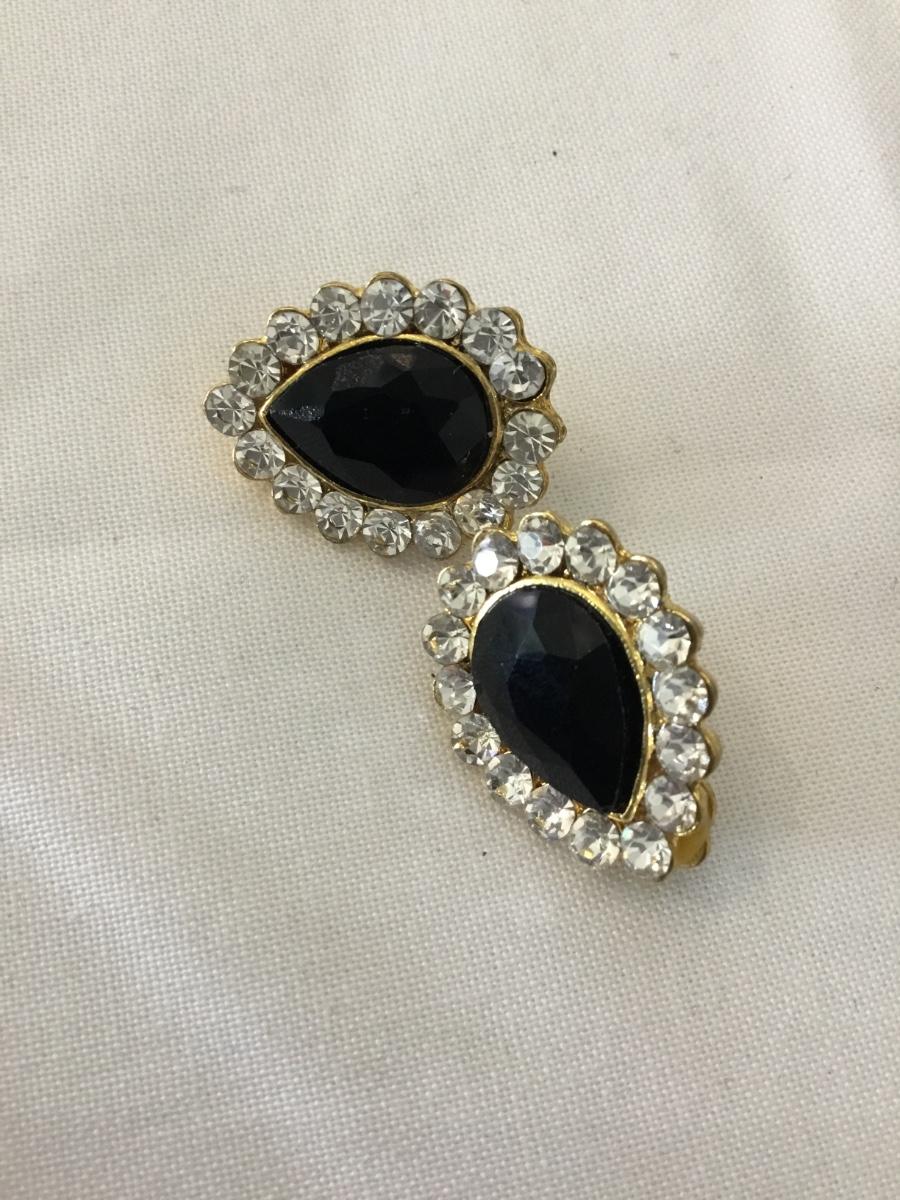 Vintage, gold, toned, faux stone rhinestone clip on earrings