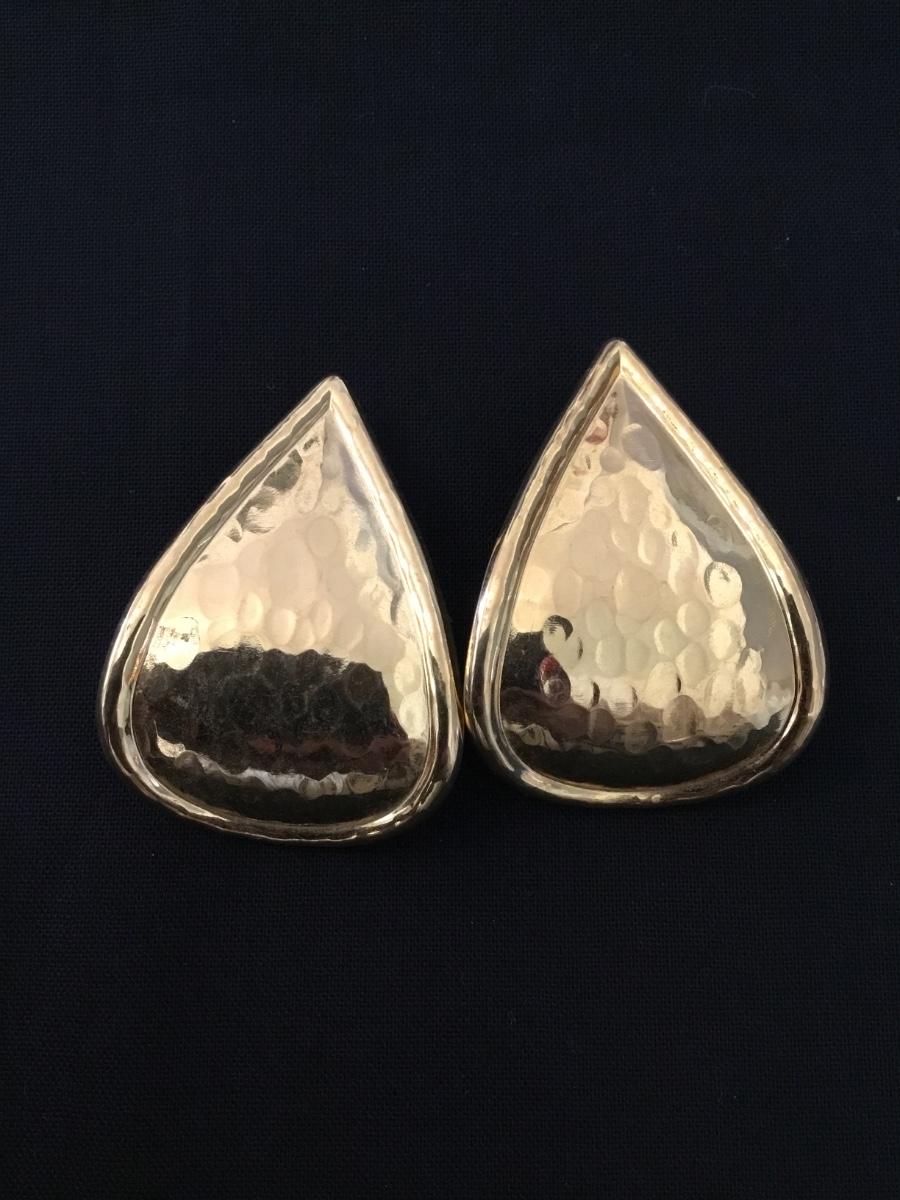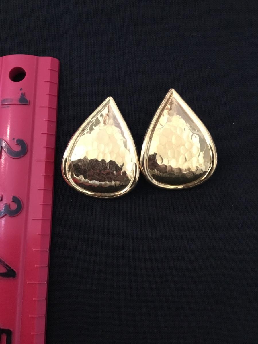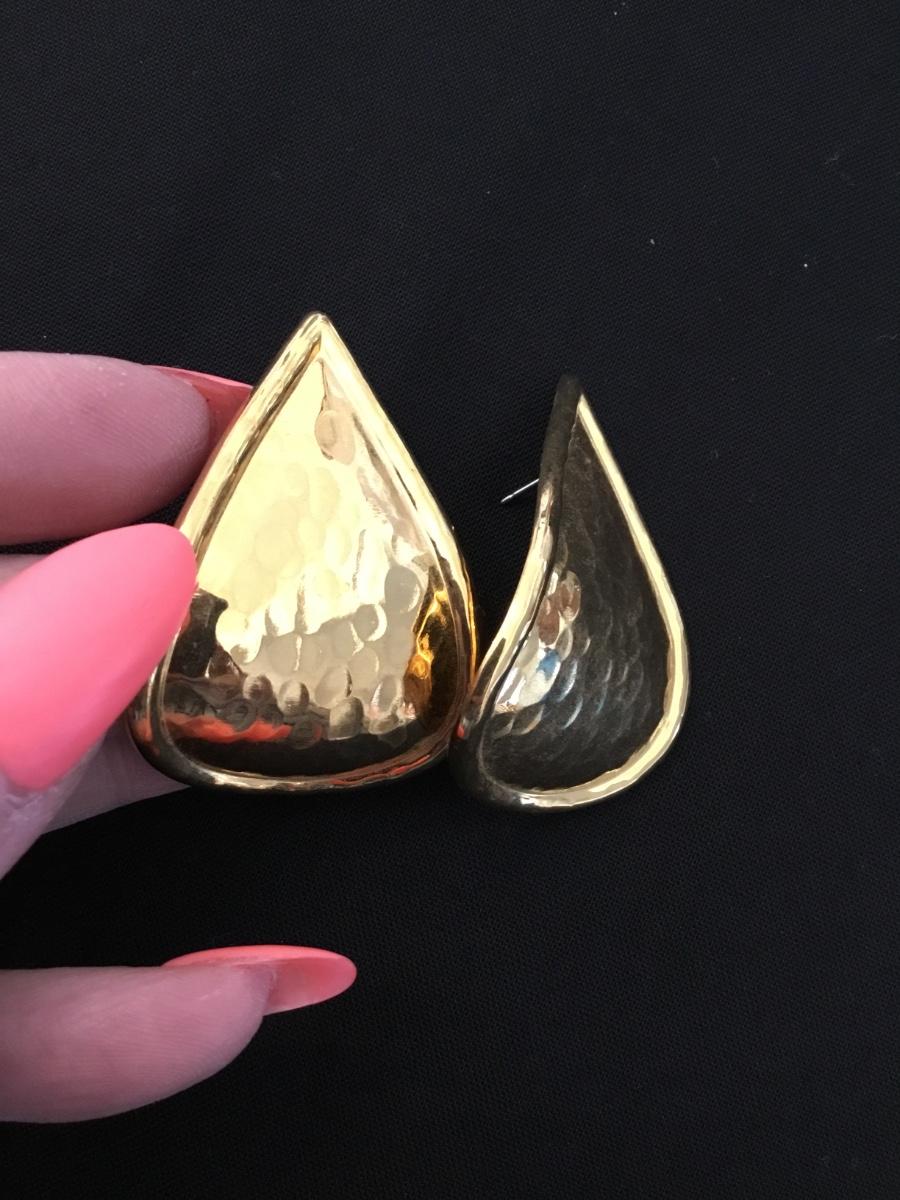 Vintage, gold, toned hammered metal teardrop, large statement earrings