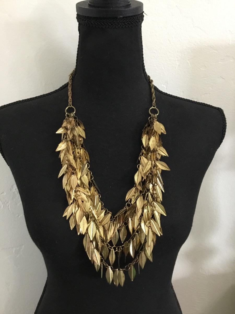 Vintage, gold, toned, Leaf statement necklace