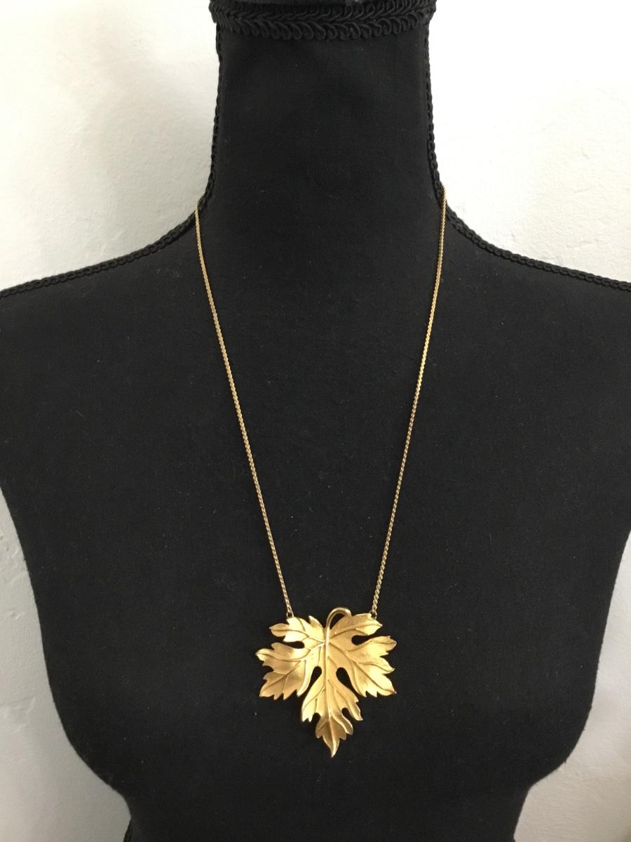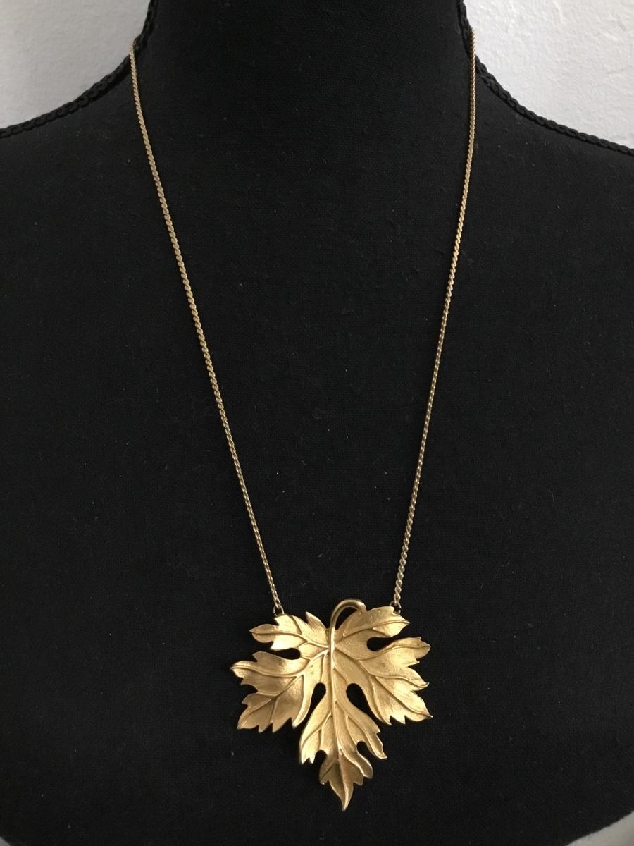 Vintage, gold, toned, metal, maple leaf pendant necklace