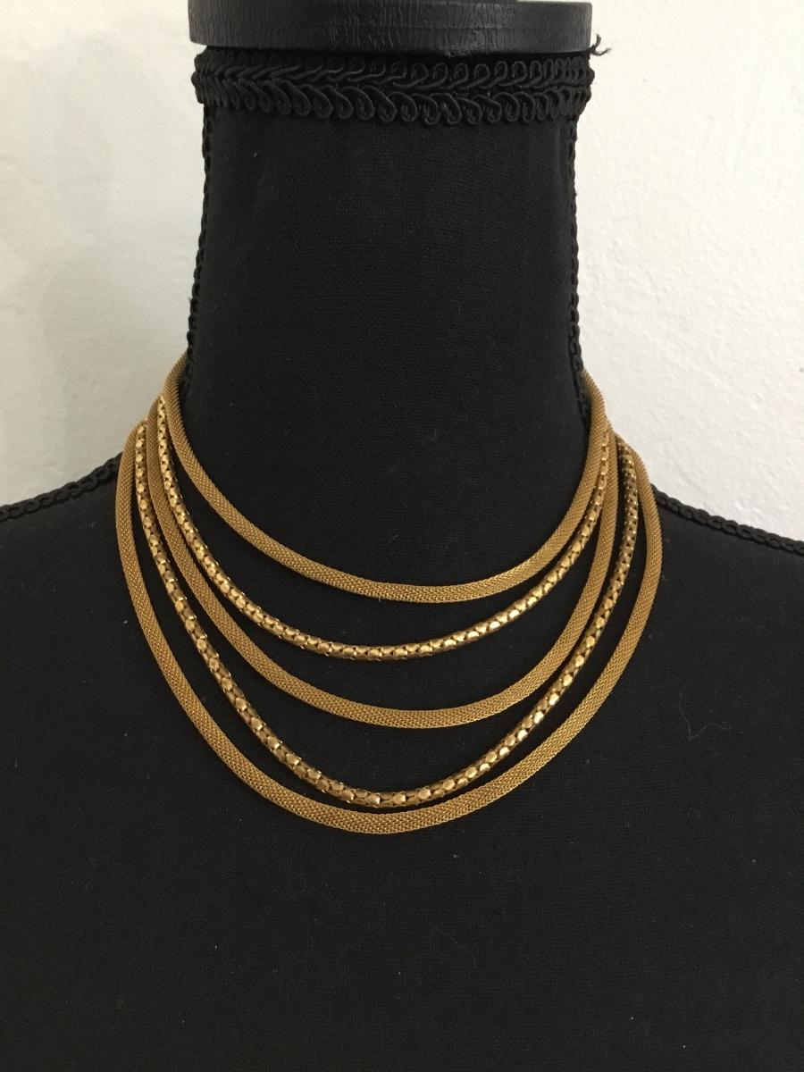 Vintage Gold, toned, multi layer, choker necklace