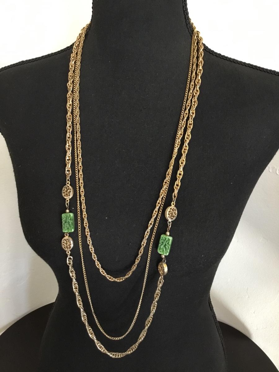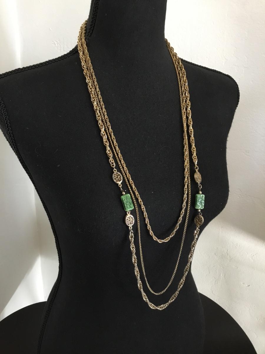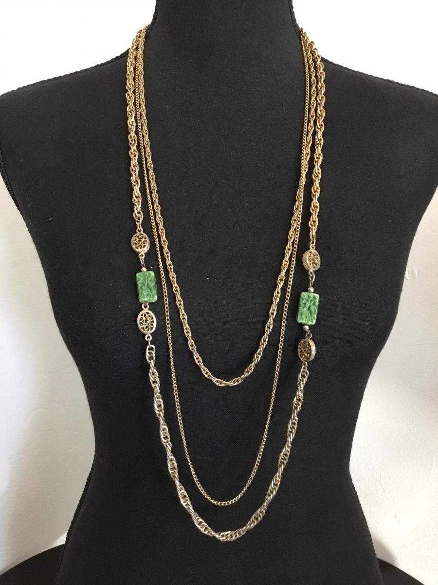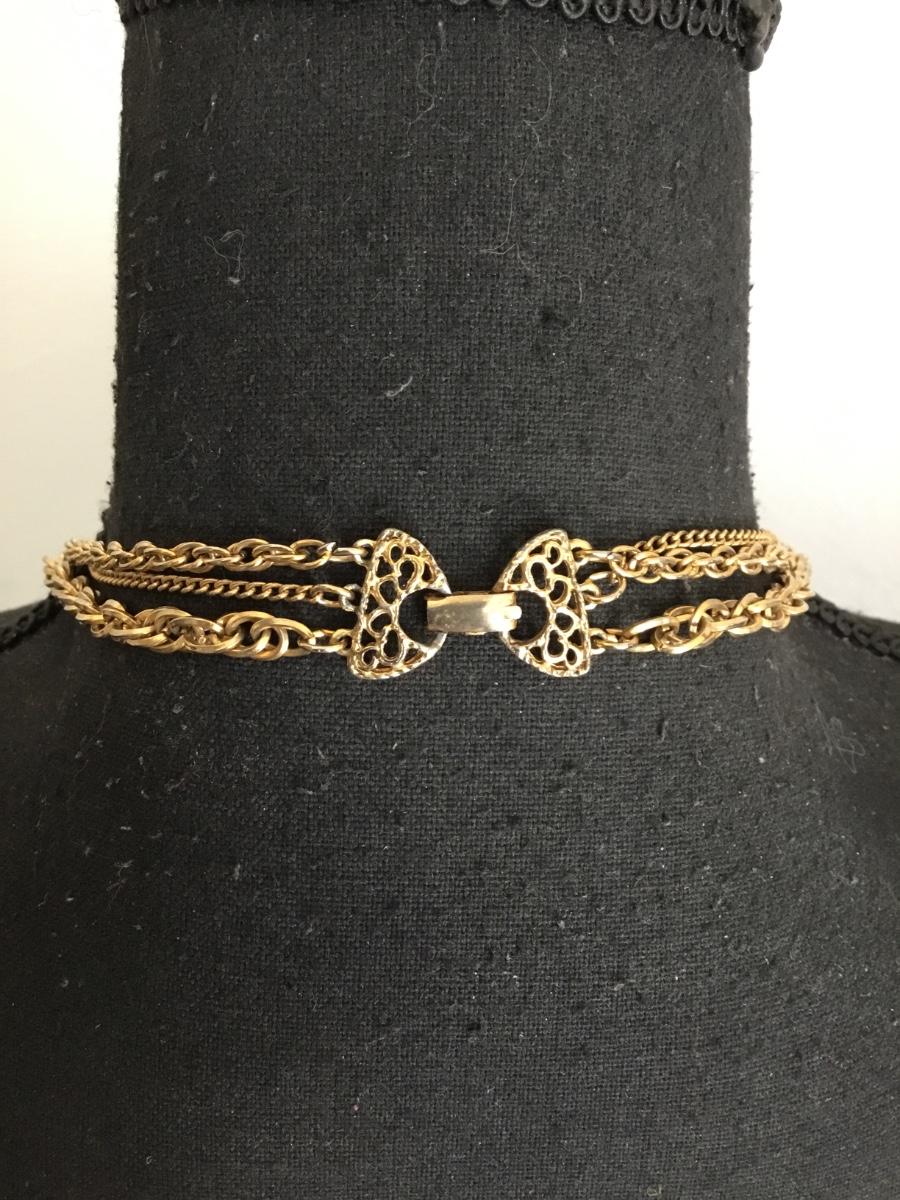 Vintage gold, toned, multi strand statement, necklace, chain has wear