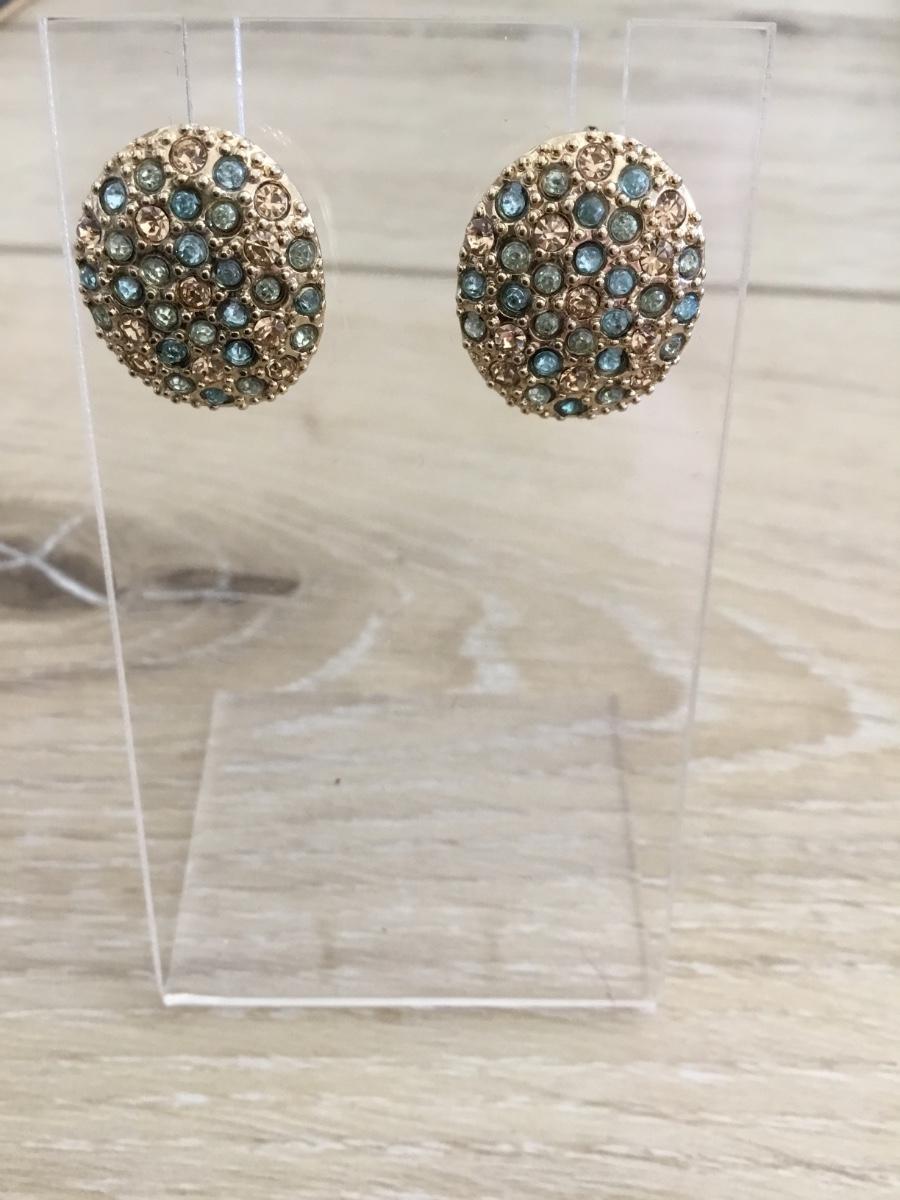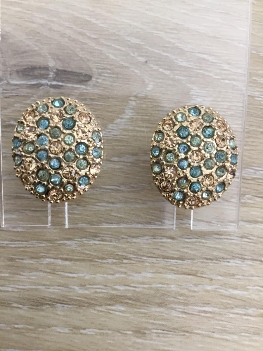 Vintage, gold, toned, multicolored rhinestone screw back clip on earrings