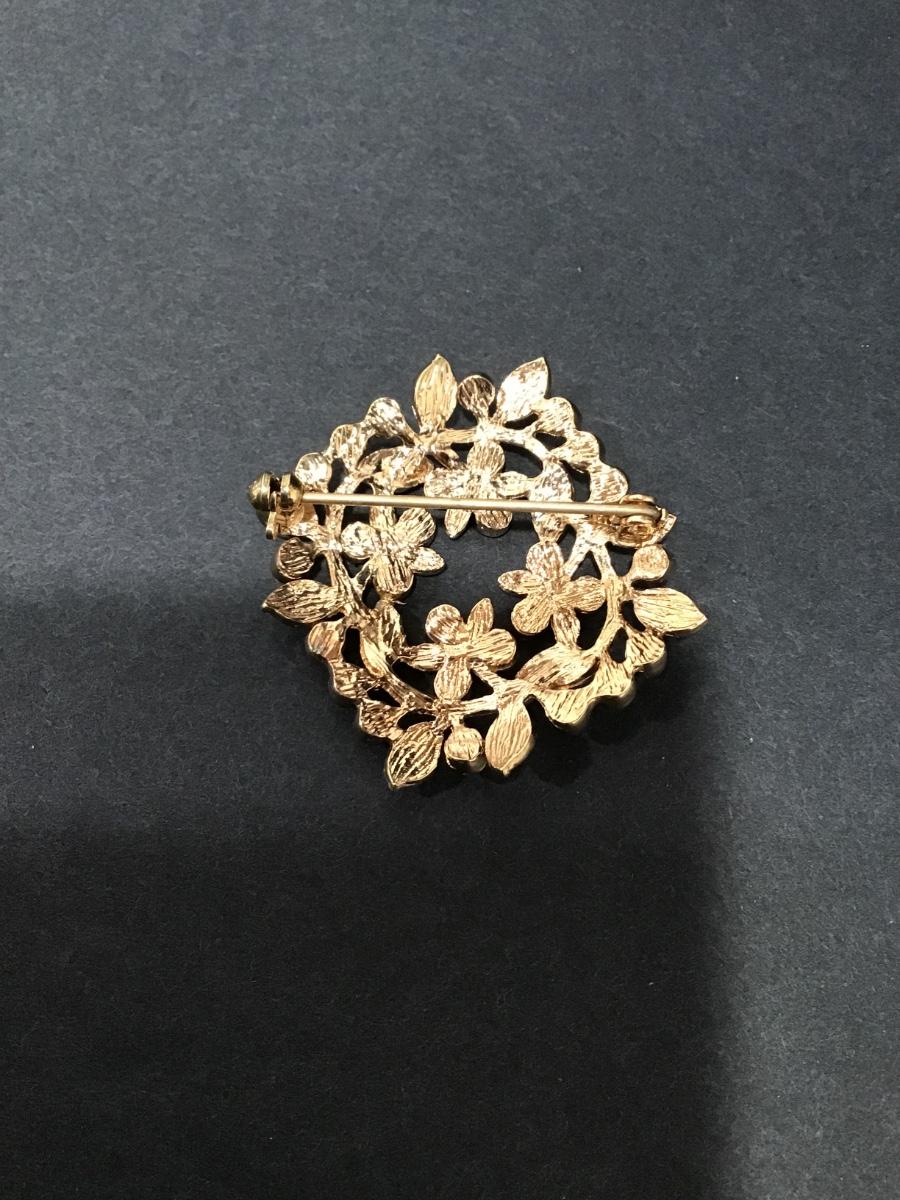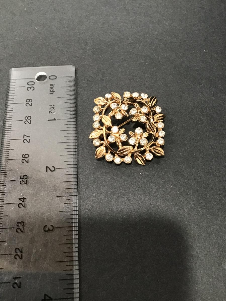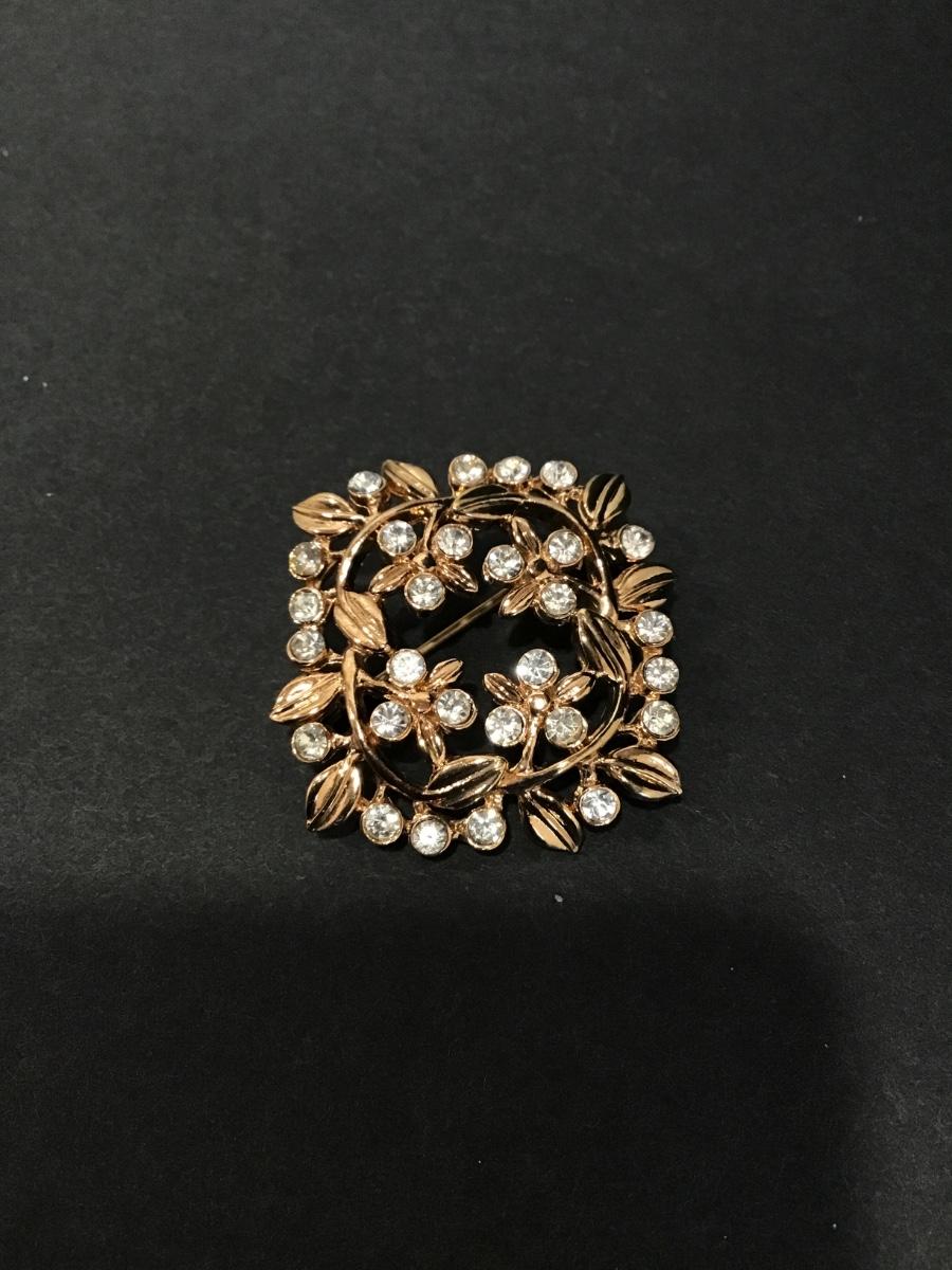Vintage Gold, toned, rhinestone, flower, brooch