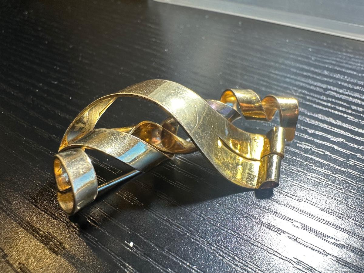 Vintage gold toned swirled or twisted design brooch