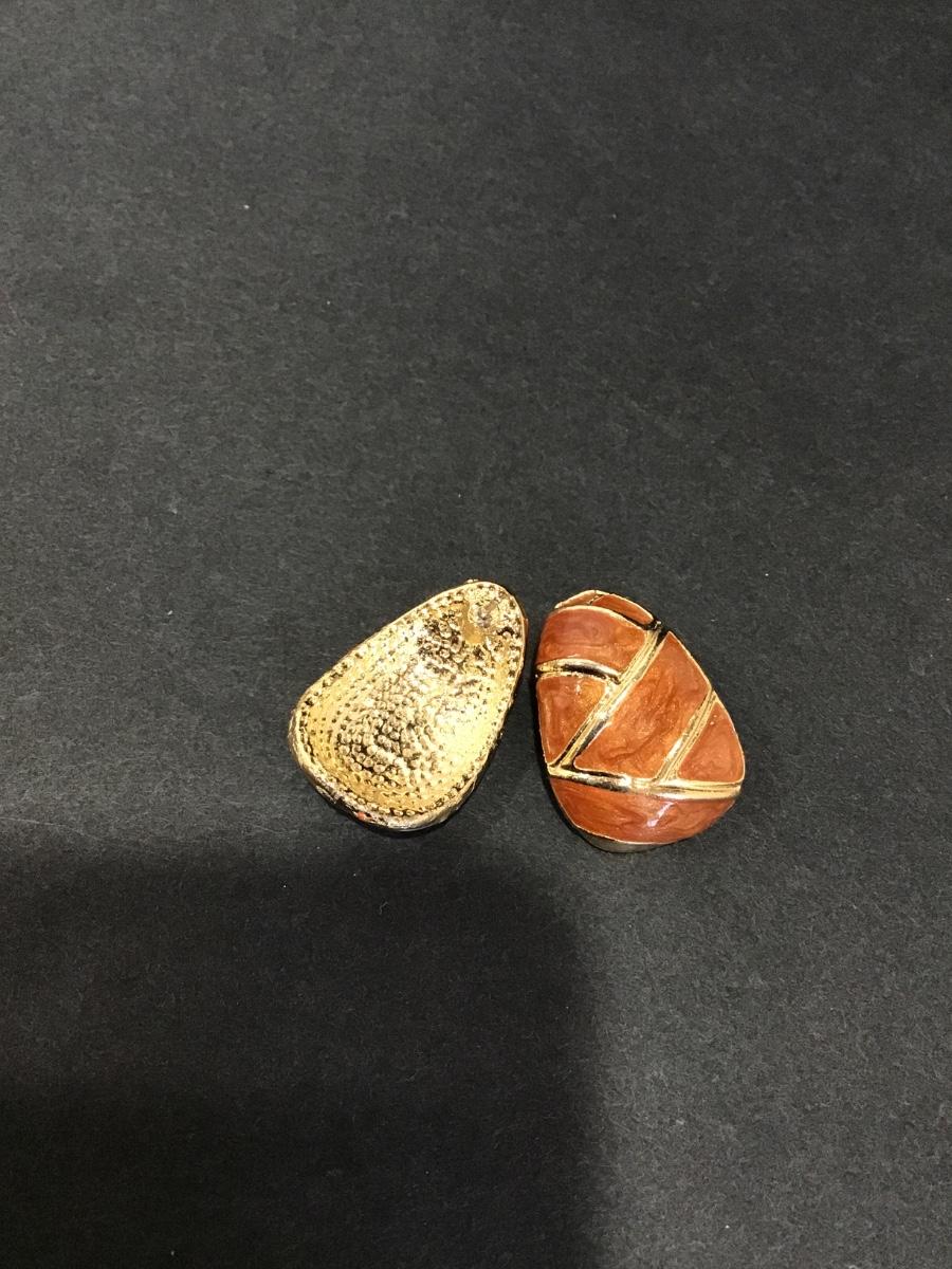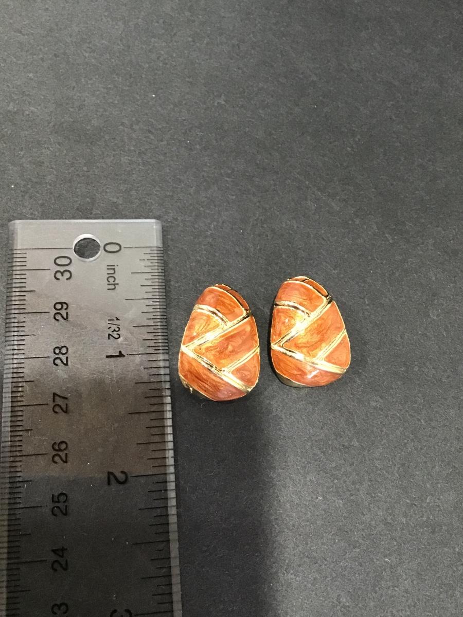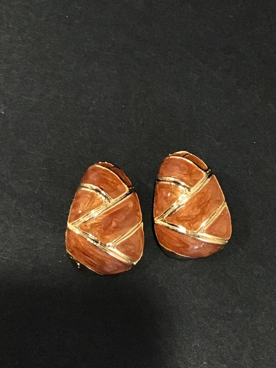 Vintage, gold, toned, thick, chunky brown sugar, enameled earrings