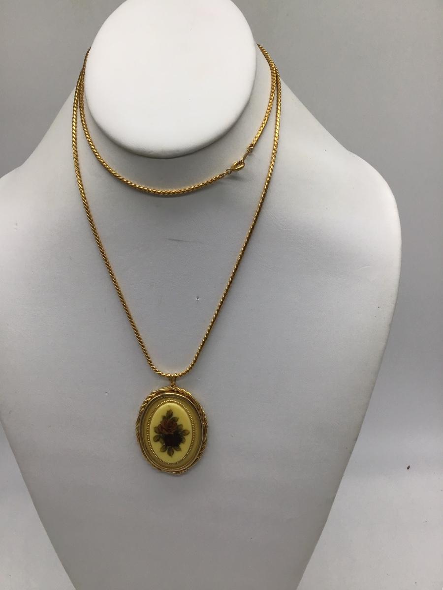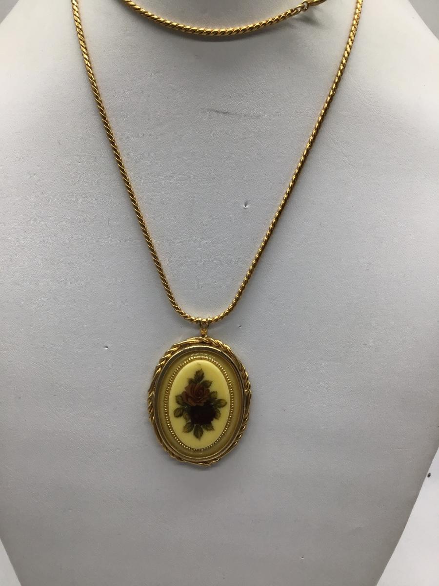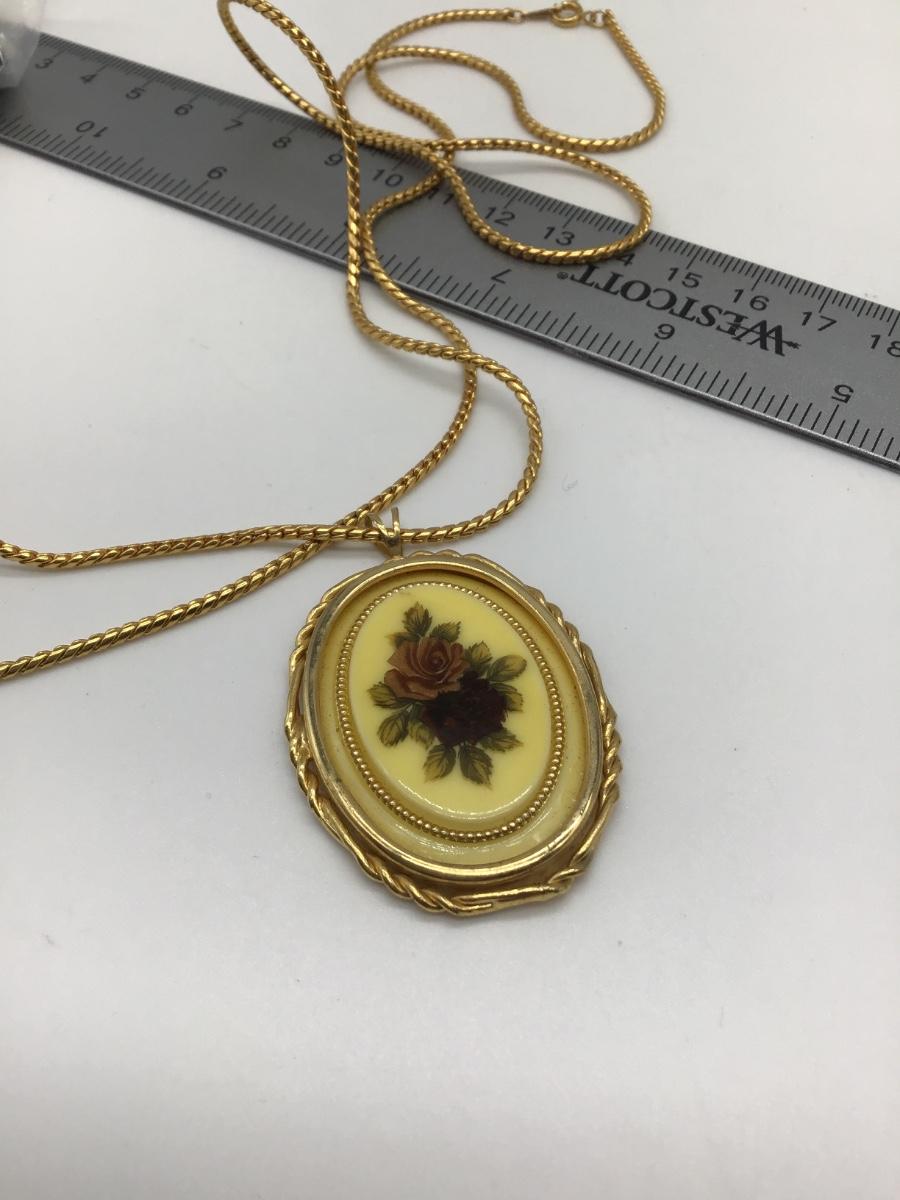 Vintage Gold Toned Yellow Floral Oval Pendant Necklace Korea Chain