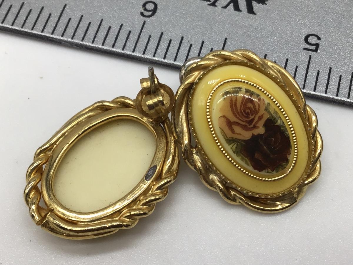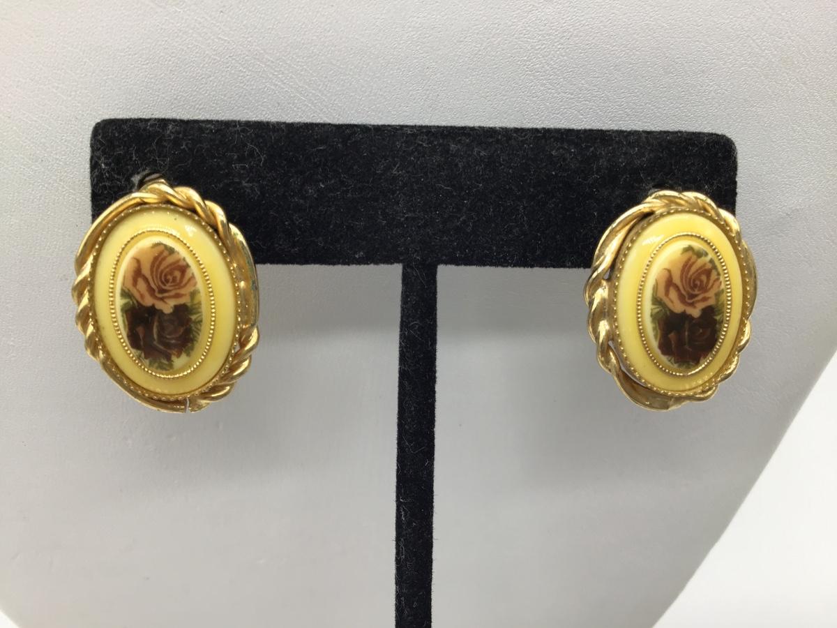 Vintage Gold Toned Yellow Floral Oval Earrings