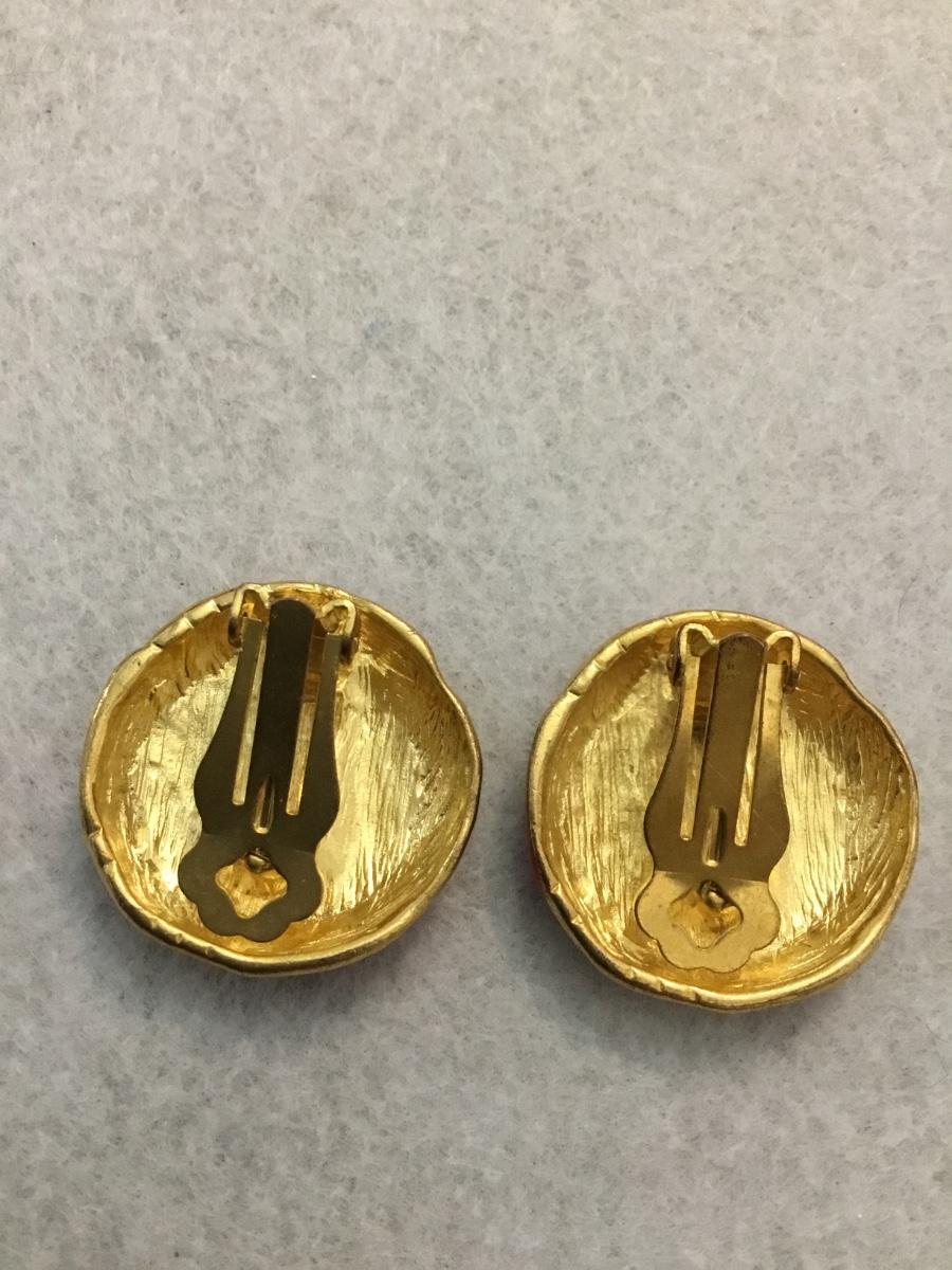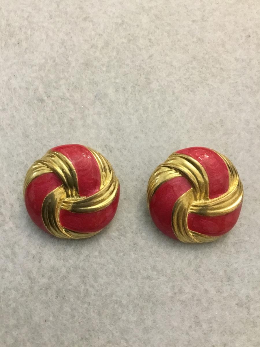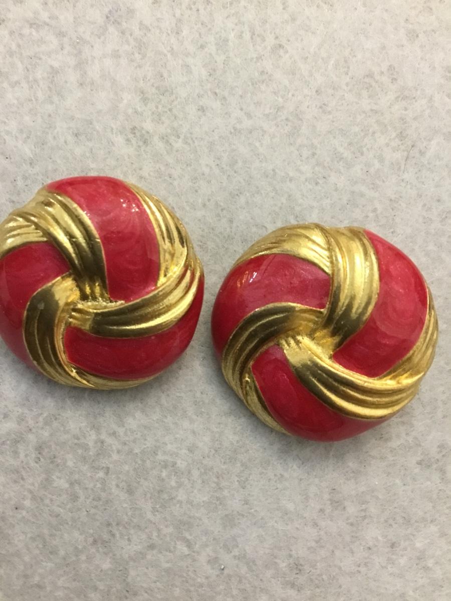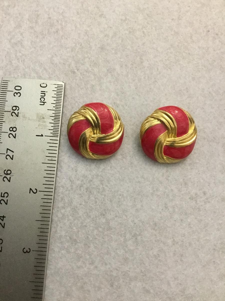 Vintage gold tones, pink enamel clip on earrings
