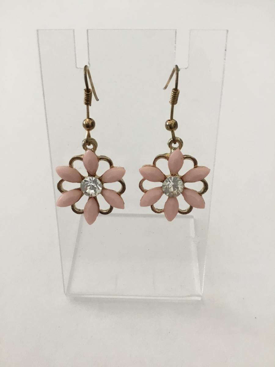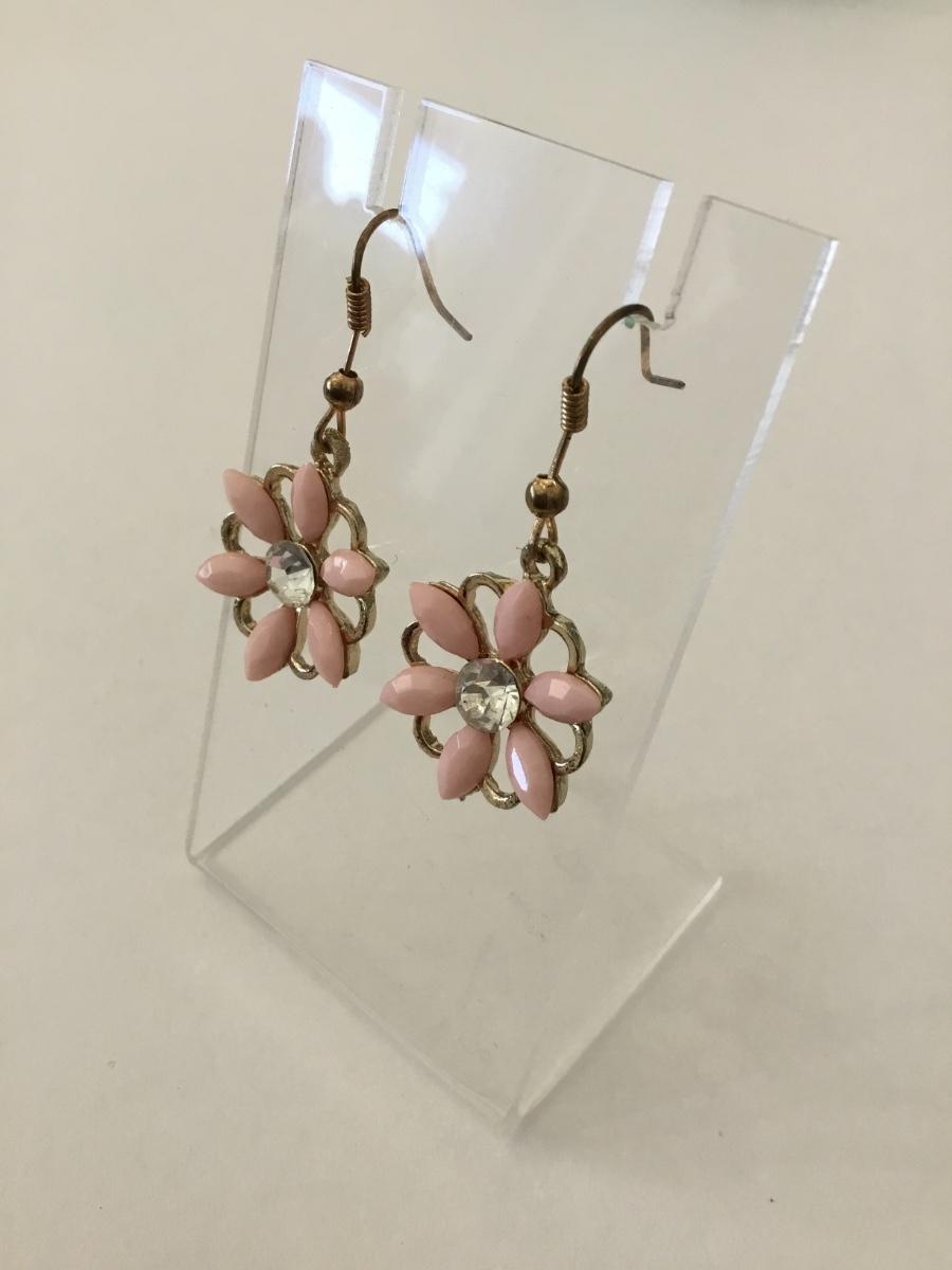 Vintage, gold town, blush, pink enameled, flowered earrings