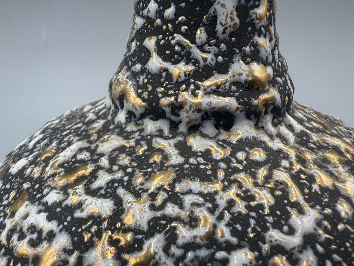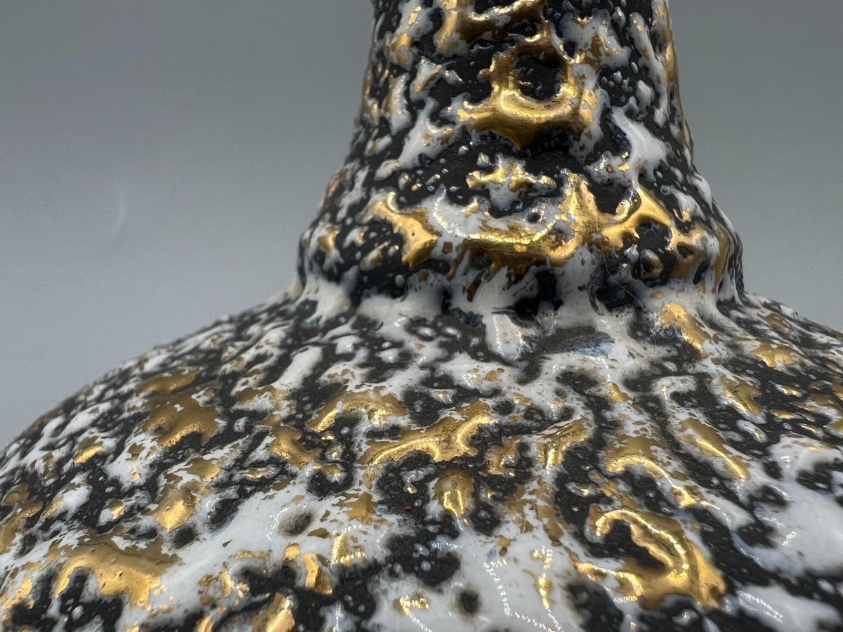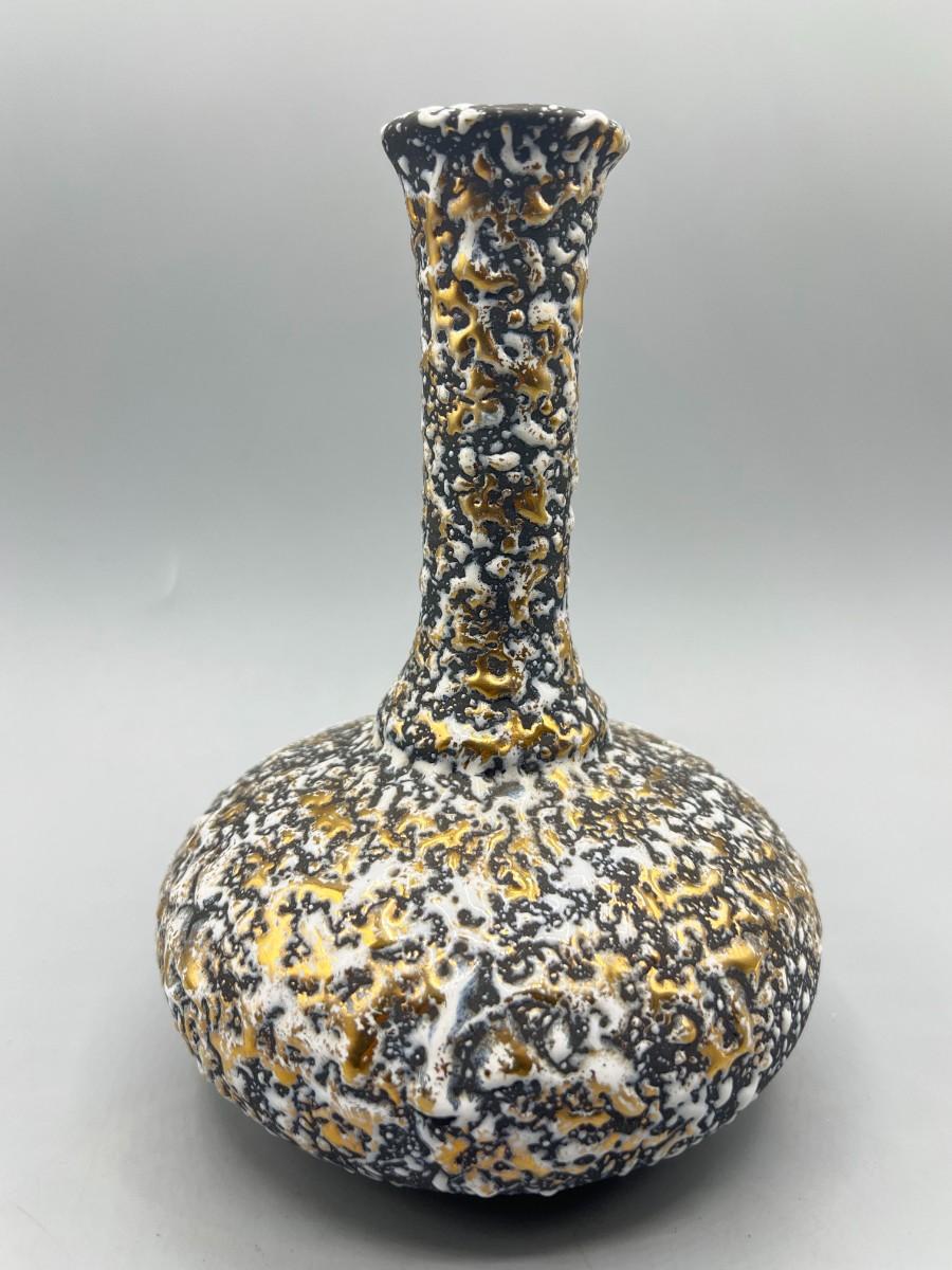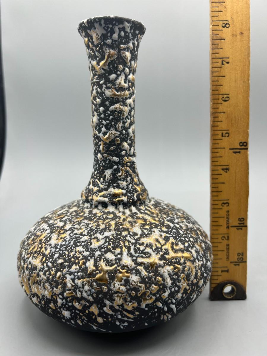 Vintage Gold & White Textured Ceramic Pottery Art Accent Vase