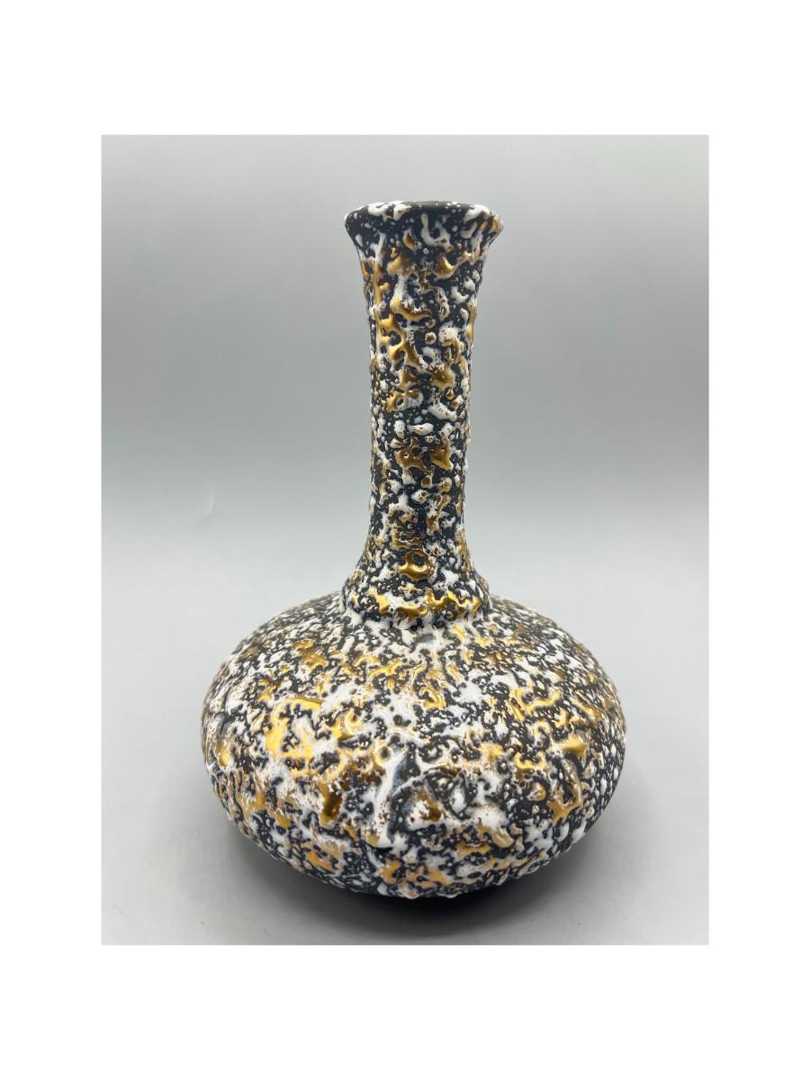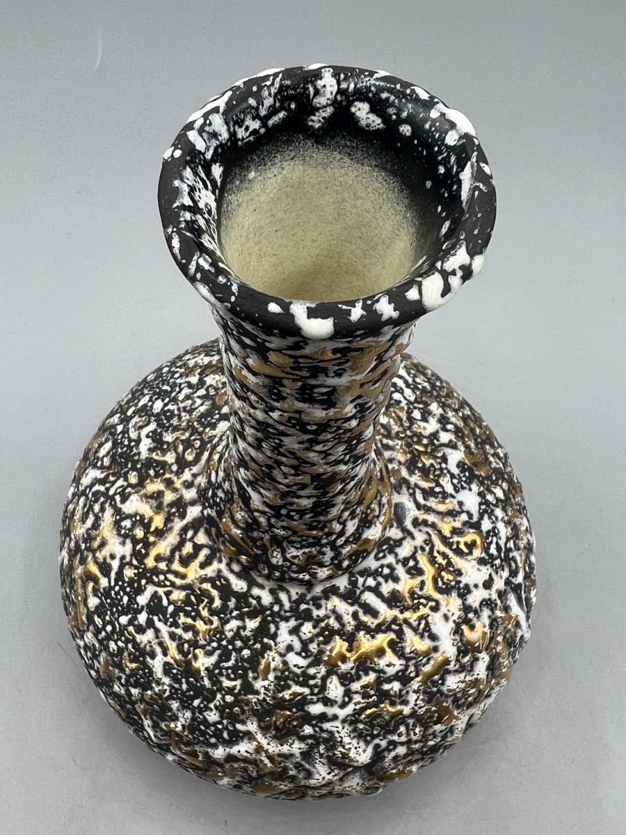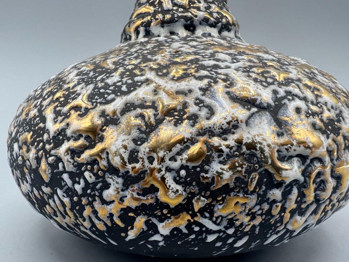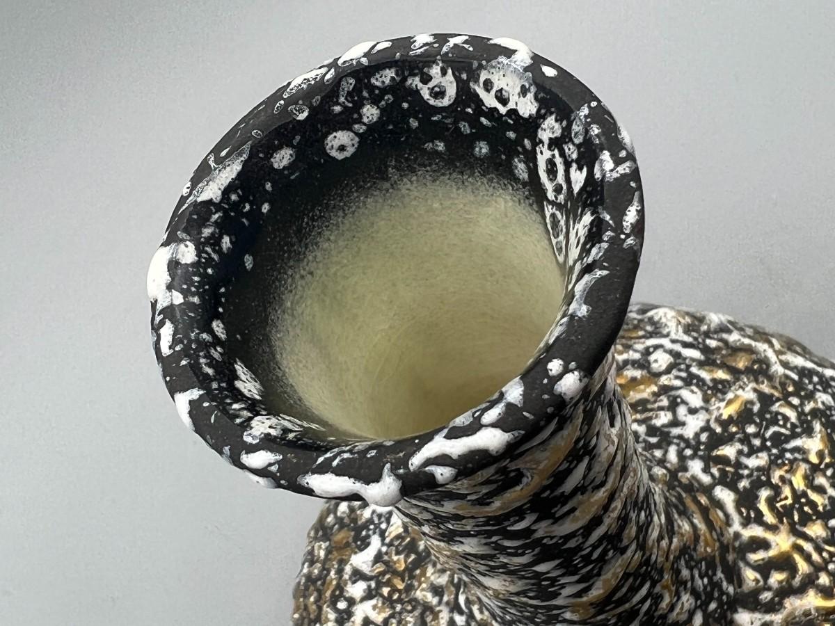 Vintage Gold & White Textured Ceramic Pottery Art Accent Vase