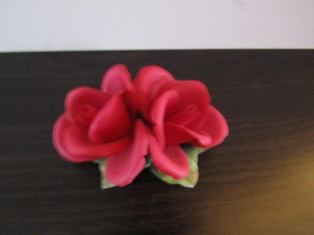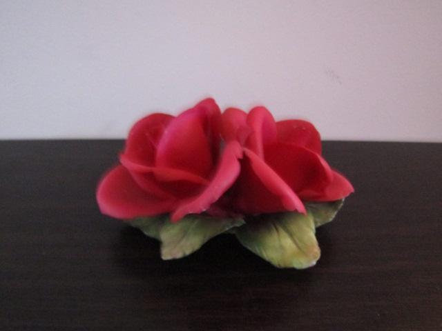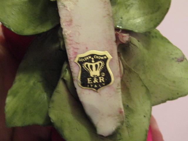 Vintage Golden Crown E & R Italy Capodimonte Porcelain Red Roses