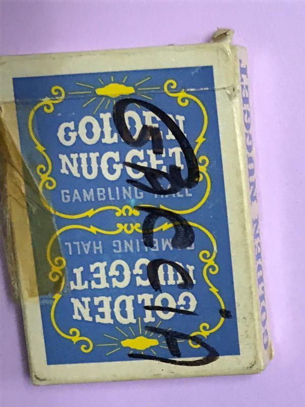 Vintage Golden Nugget Gambling Hall playing cards. Open deck. Someone has written on one side of the box.