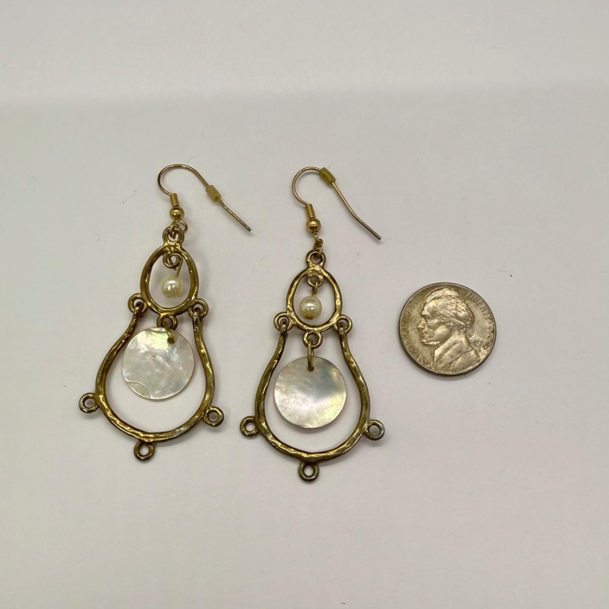 Vintage Goldtone and Mother of Pearl Drop Earrings