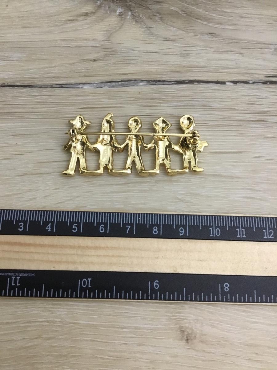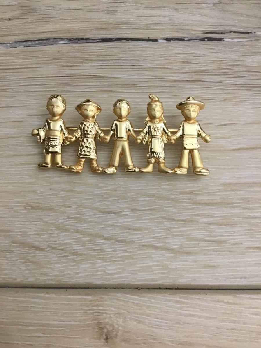 Vintage gold-tone children from all around the world brooch