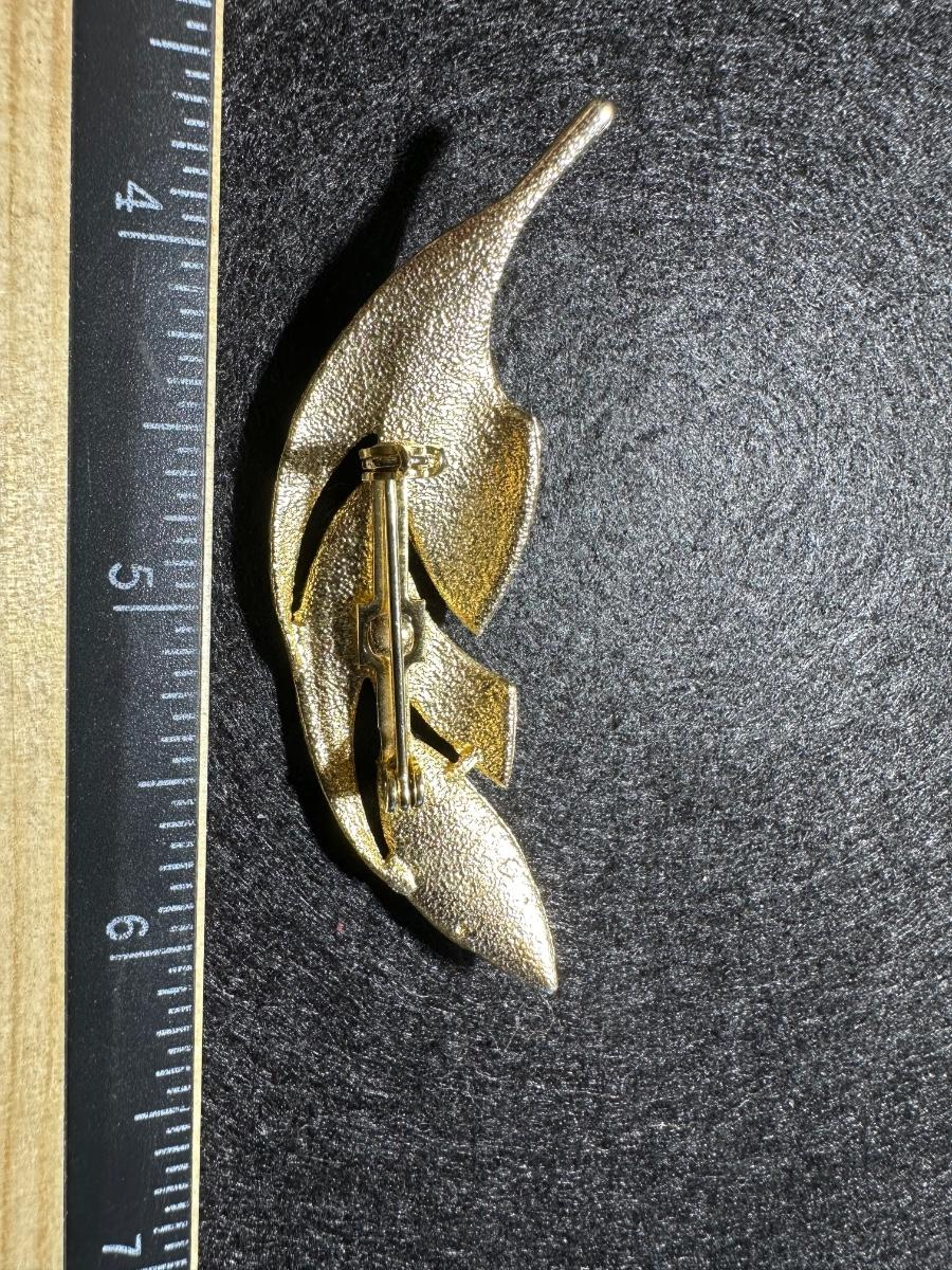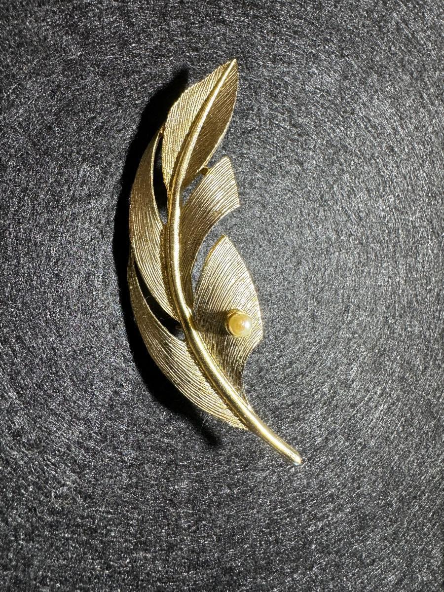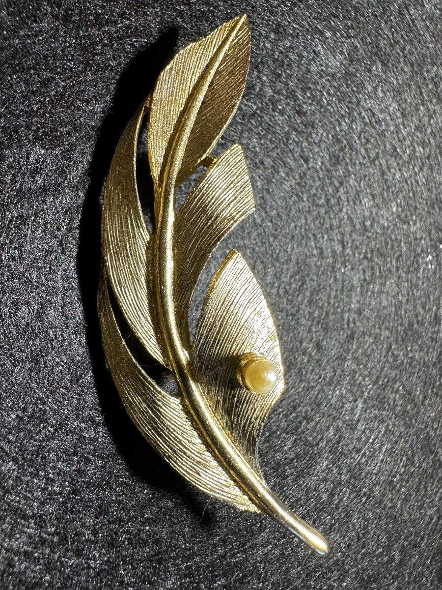 Vintage Goldtone detailed feather faux pearl brooch