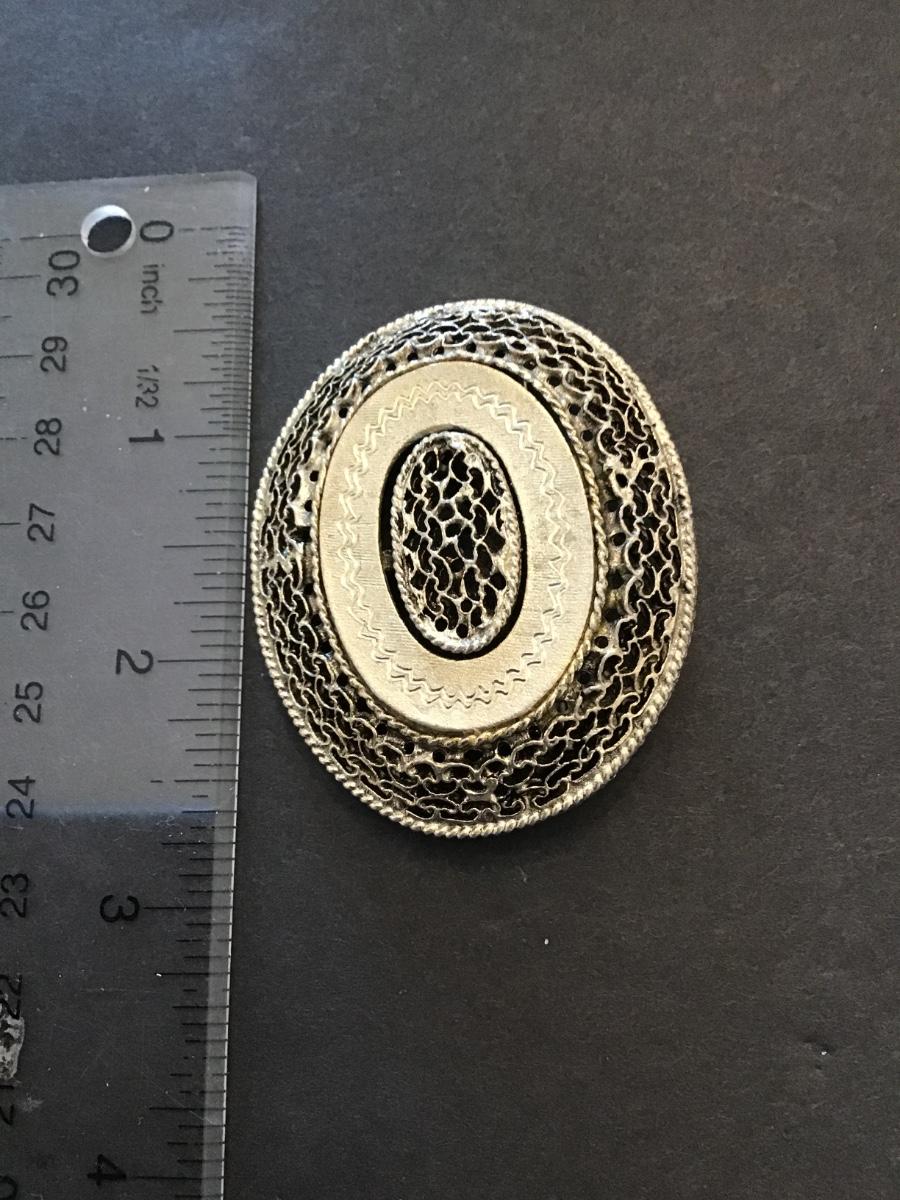 Vintage, goldtone, fashion, brooch. Please see attached photos.