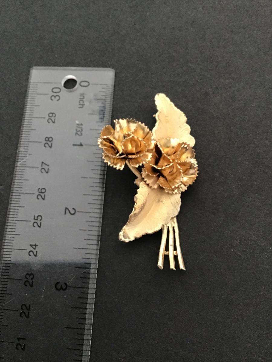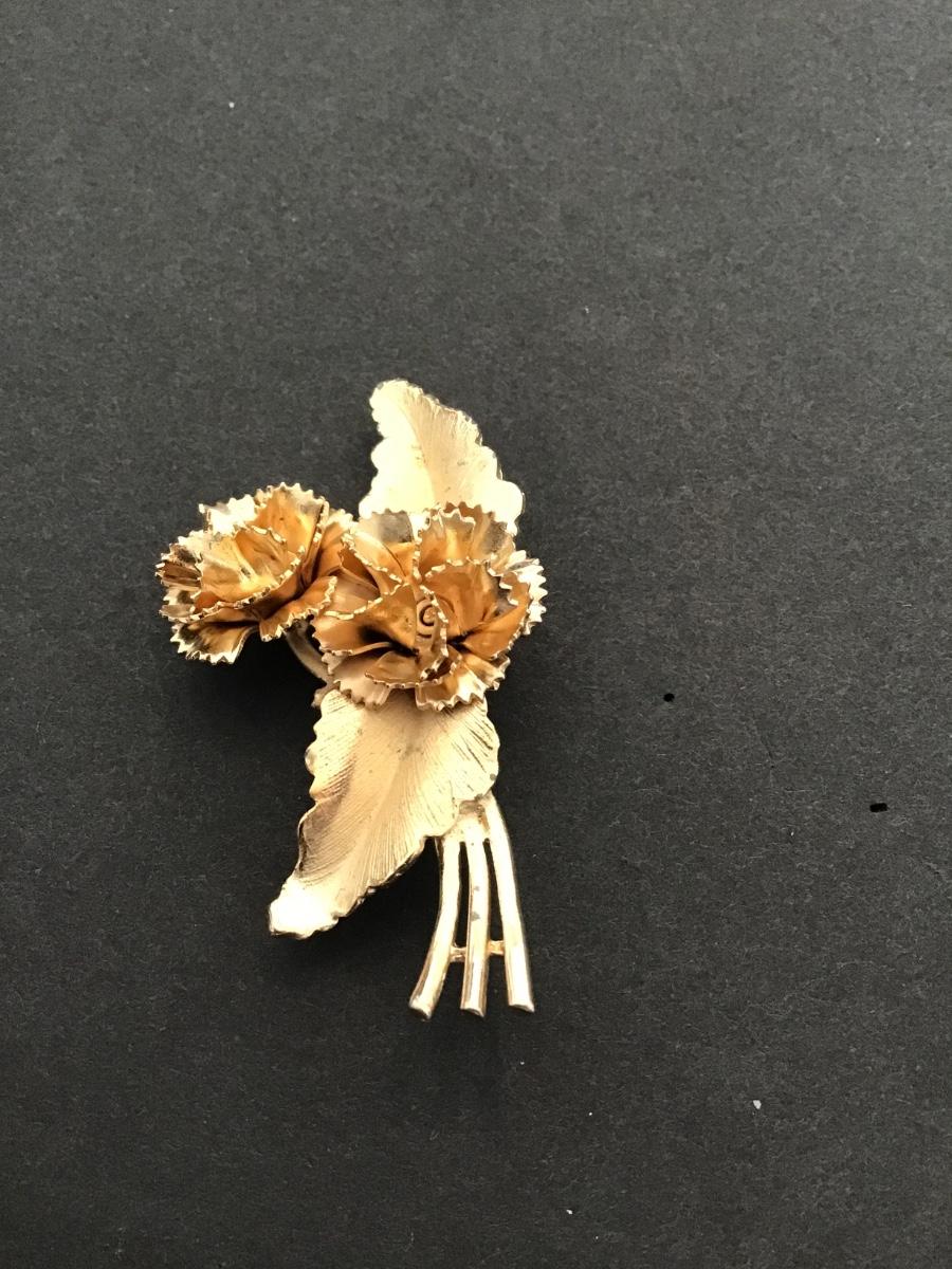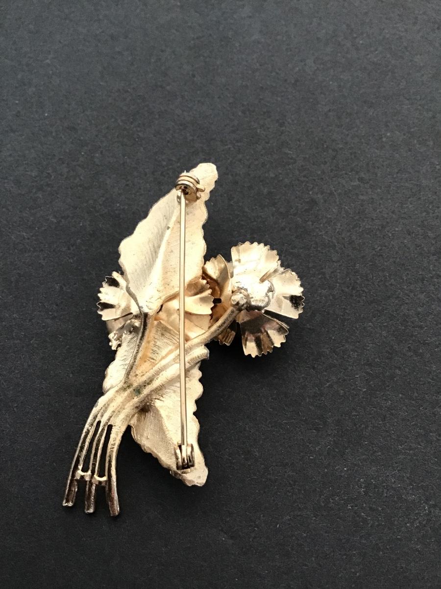 Vintage, goldtone fashion brooch has some wear are blemishes. Please see attached photos.