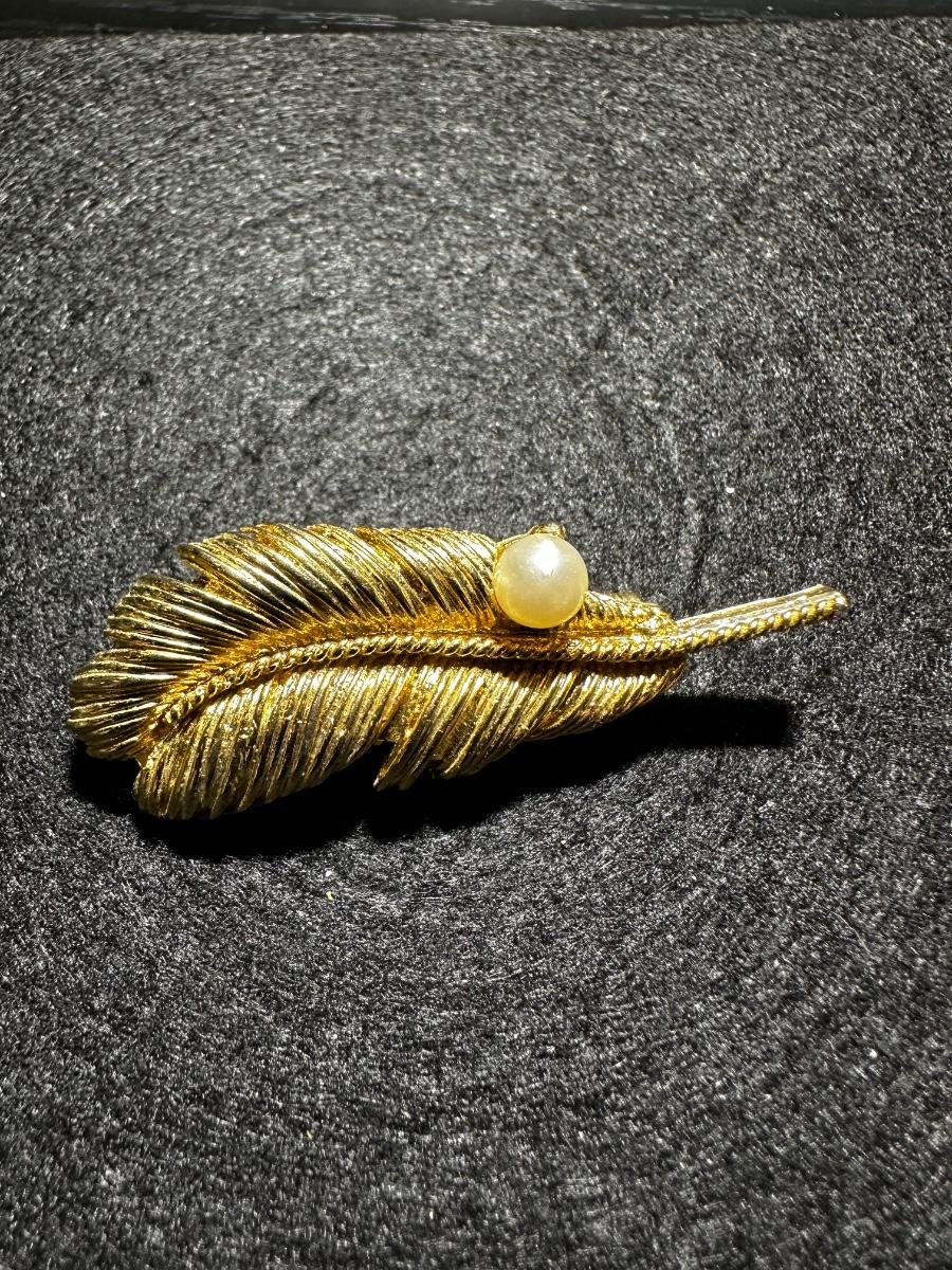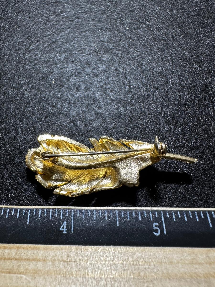 Vintage goldtone feather faux pearl