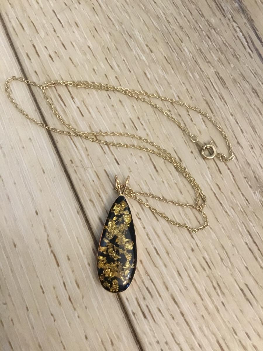 Vintage goldtone, gold flake pendant necklace very nice