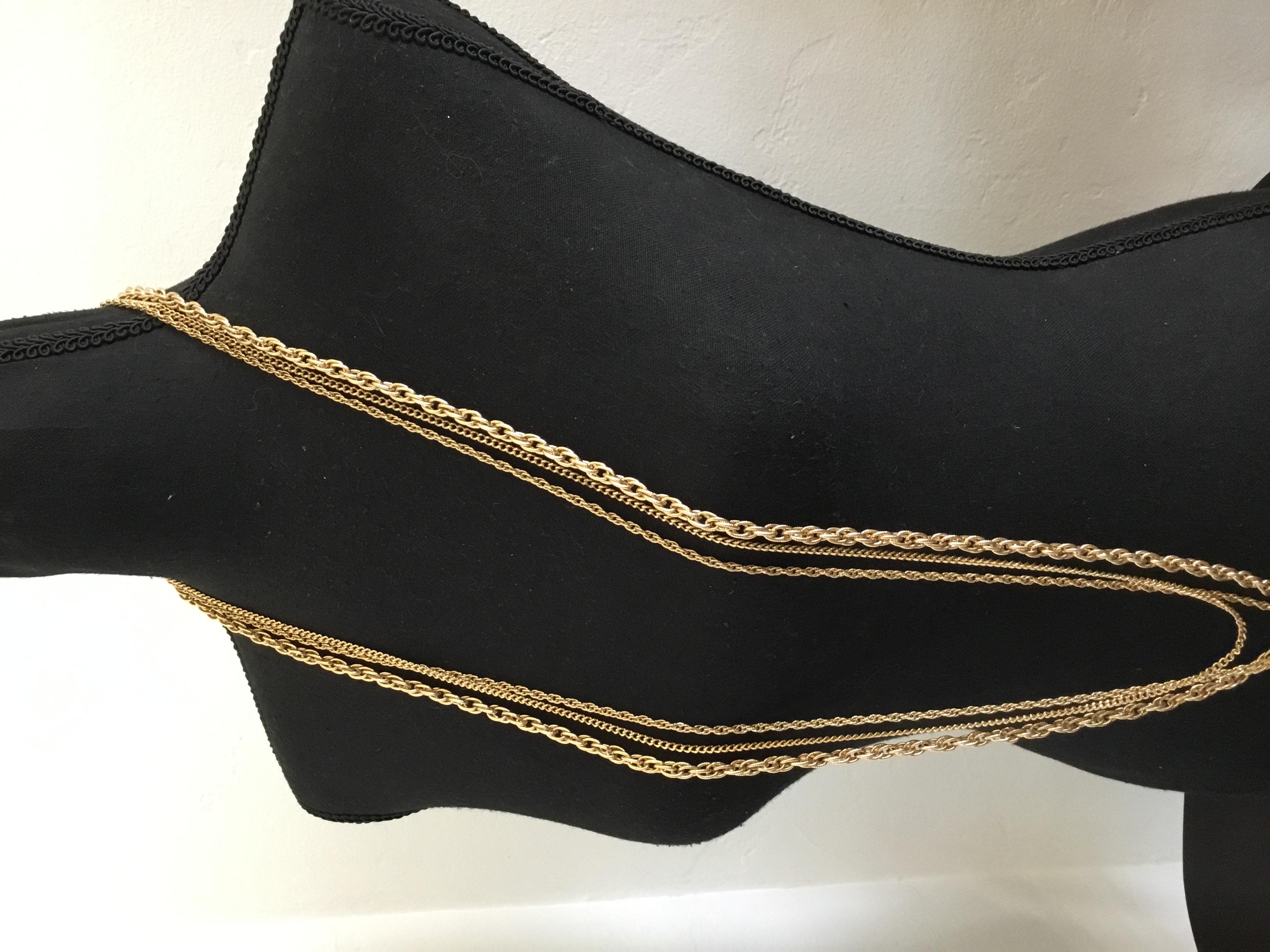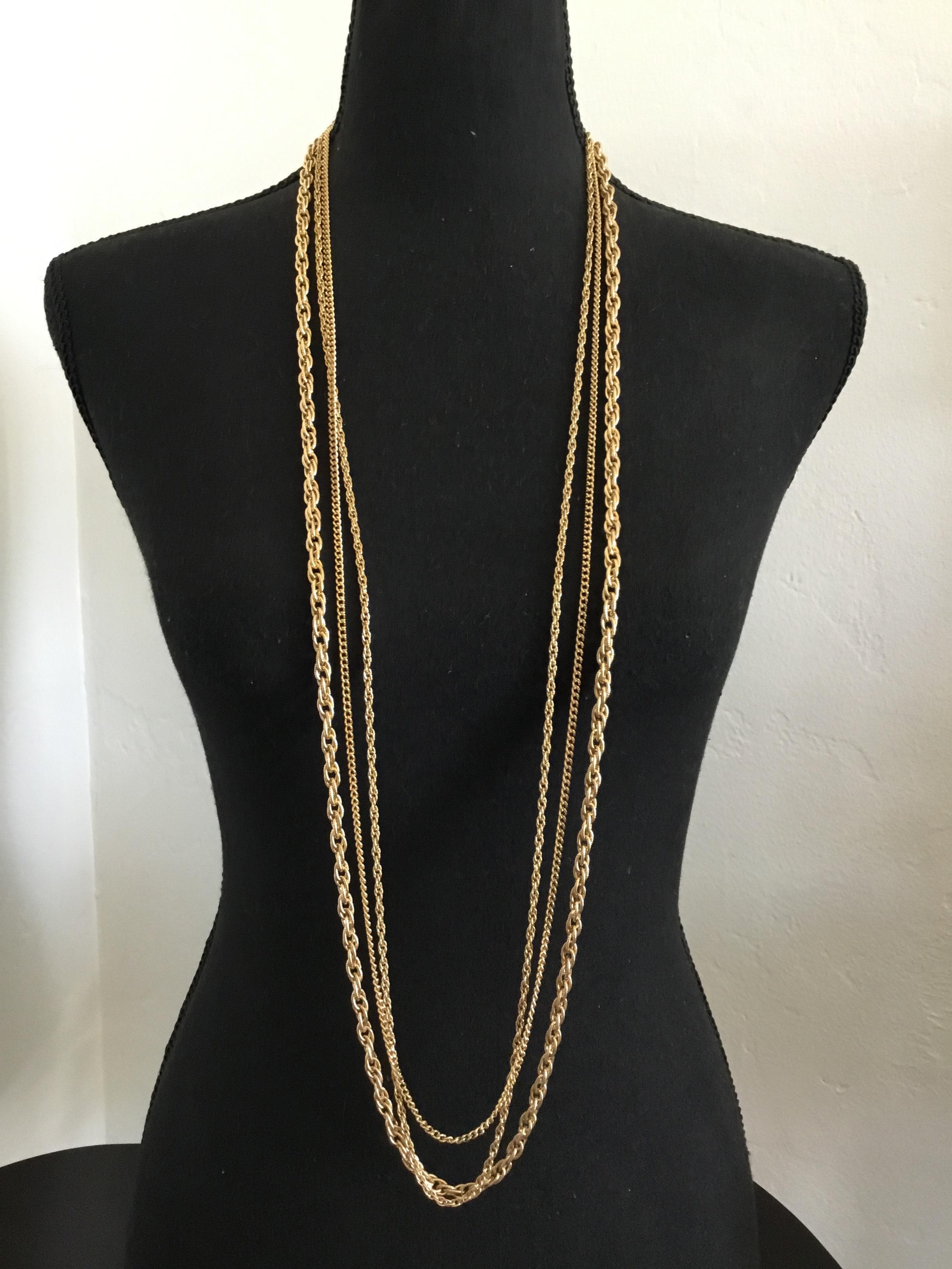 Vintage goldtone, long multi strand, chain statement, necklace with cute bow clasp