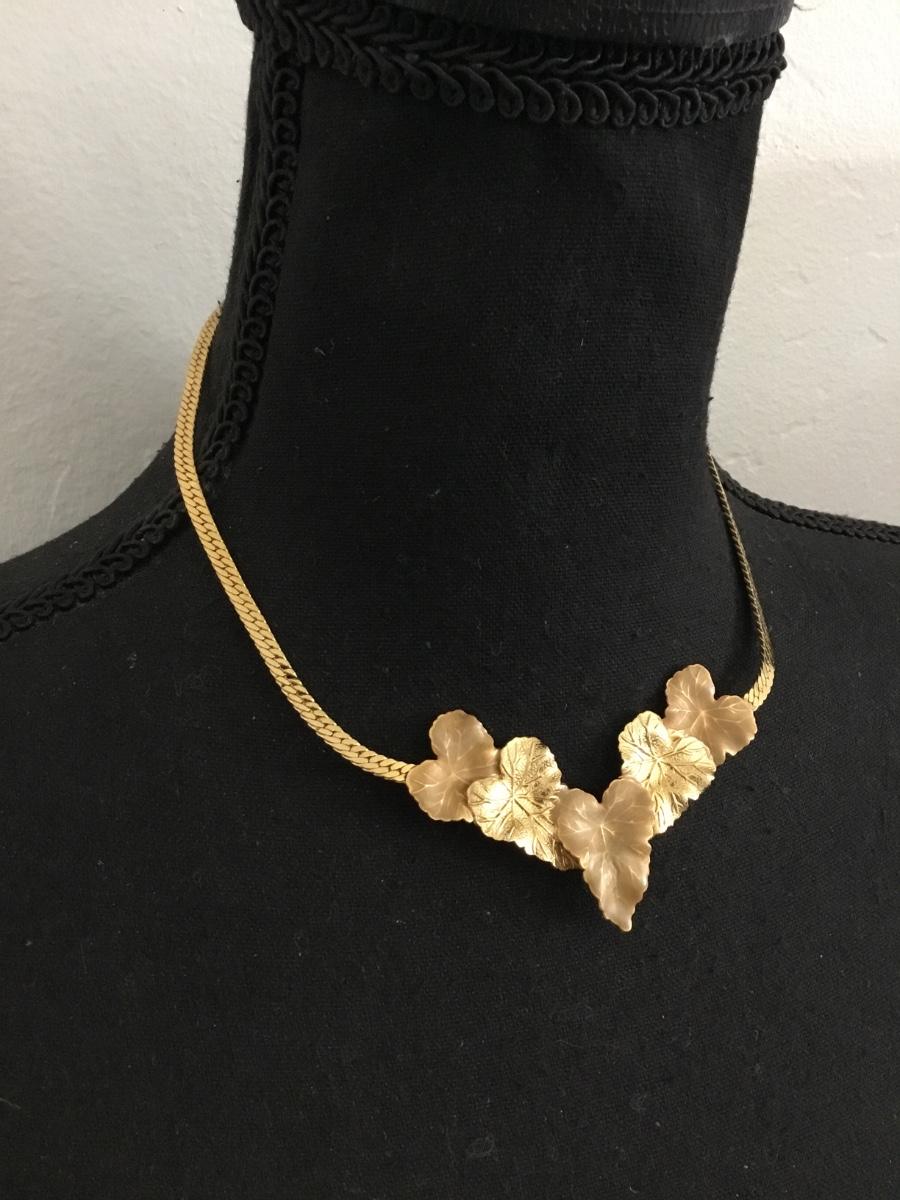Vintage goldtone, mid-century, textured, leaf statement, necklace