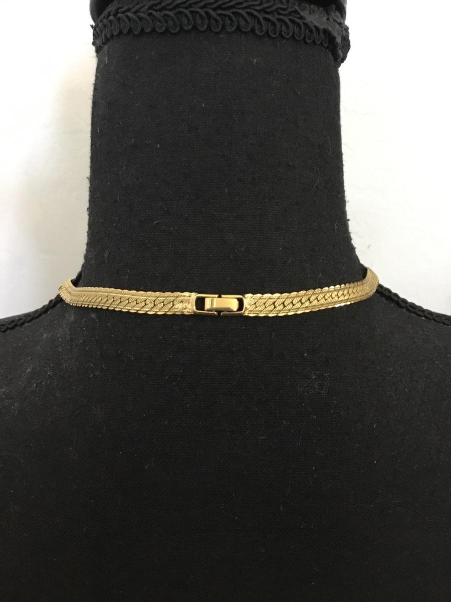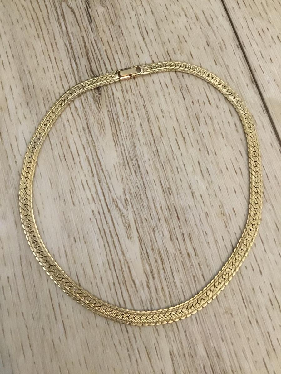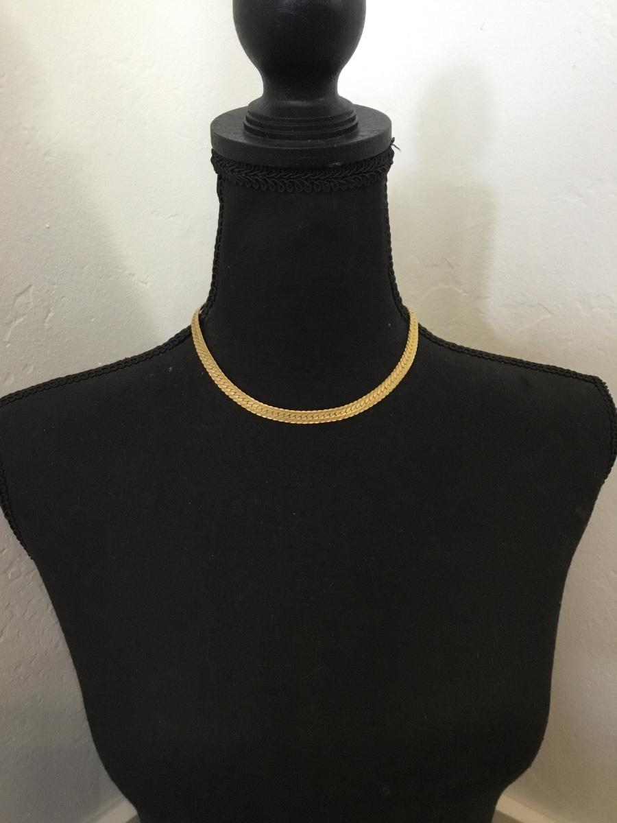 Vintage goldtone nice flat wide chain collar necklace